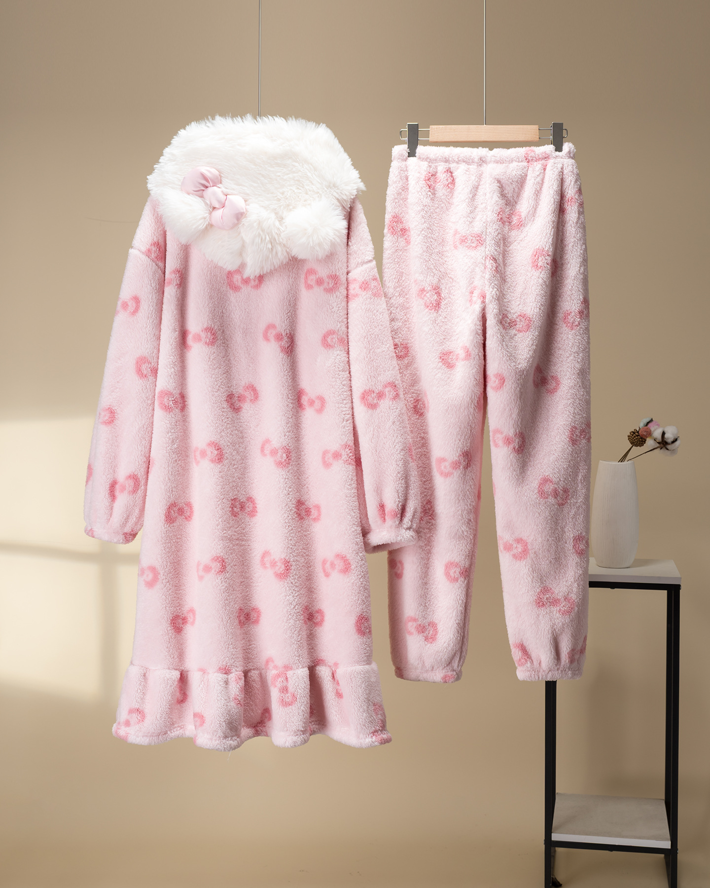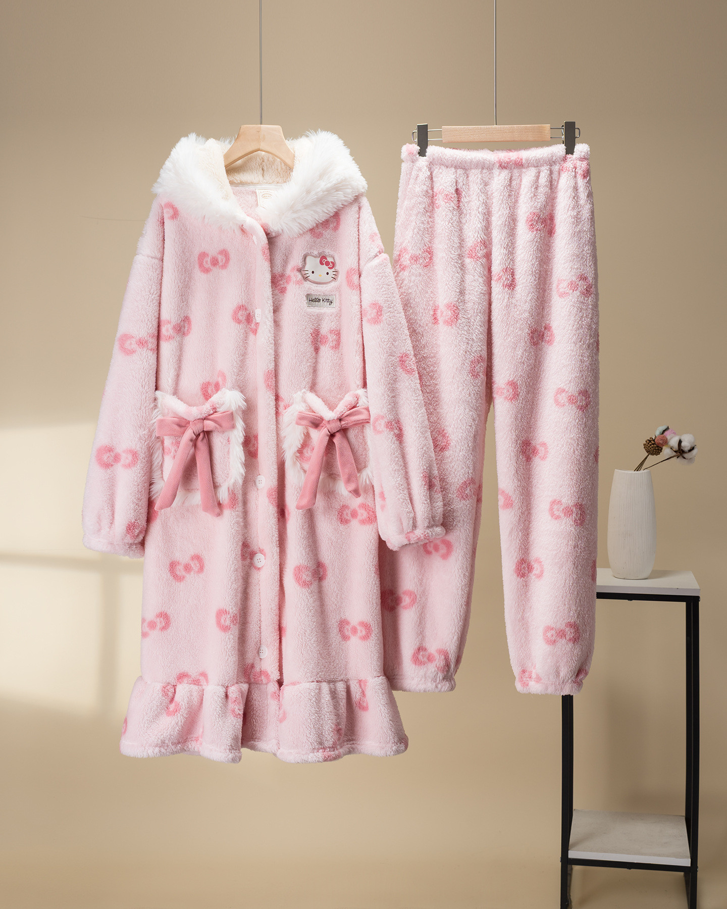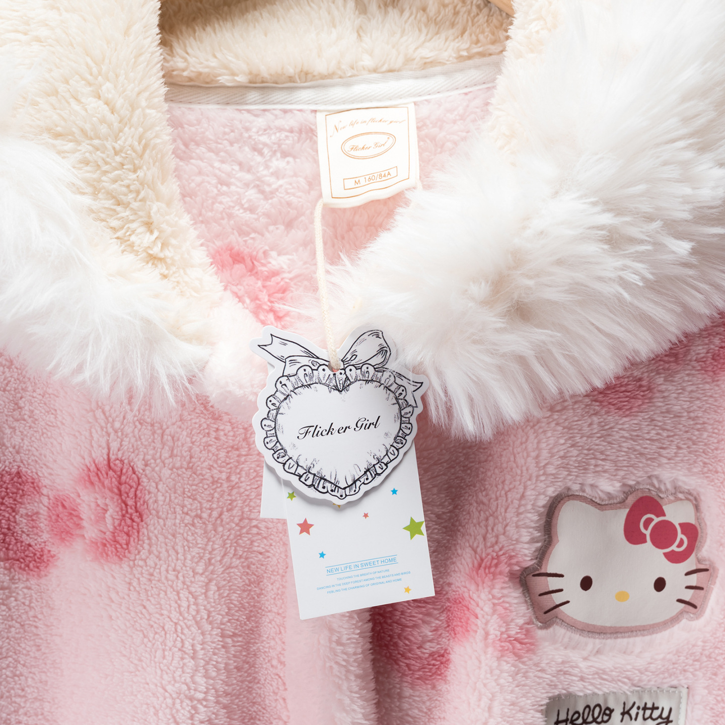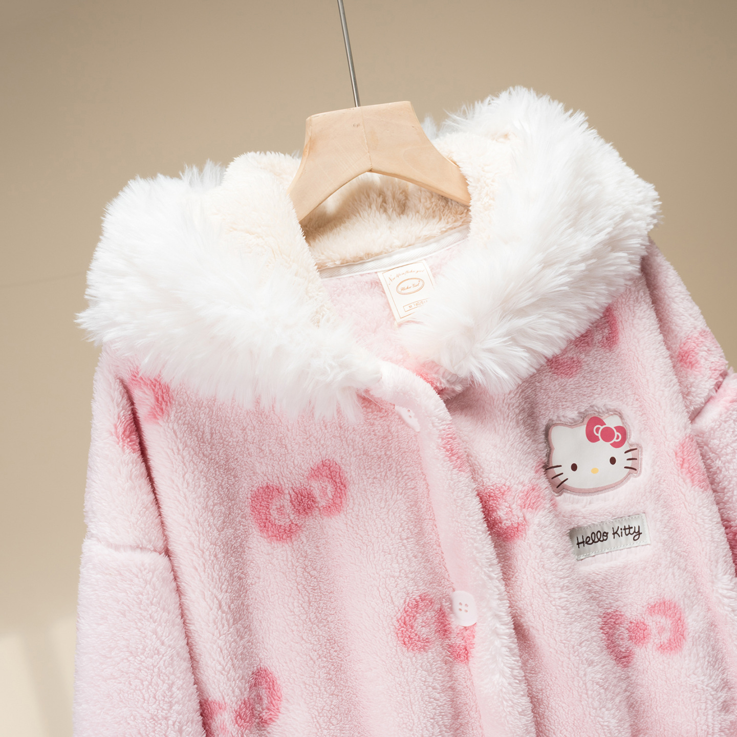 果壳睡袍冬季HelloKitty珊瑚绒加绒加厚毛绒女士家居服斗篷睡袍D