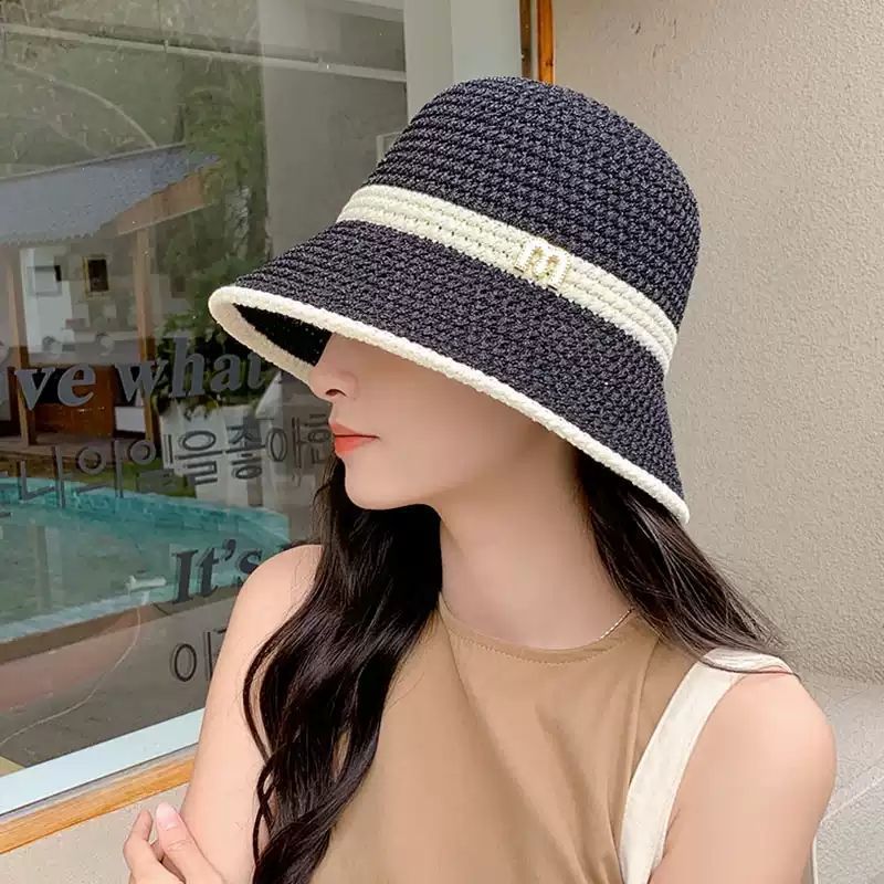 夏の韓国版日焼け止め日よけ帽子女性折り畳み草編み紫外線防止漁師帽子屋外マスクバケツ帽子