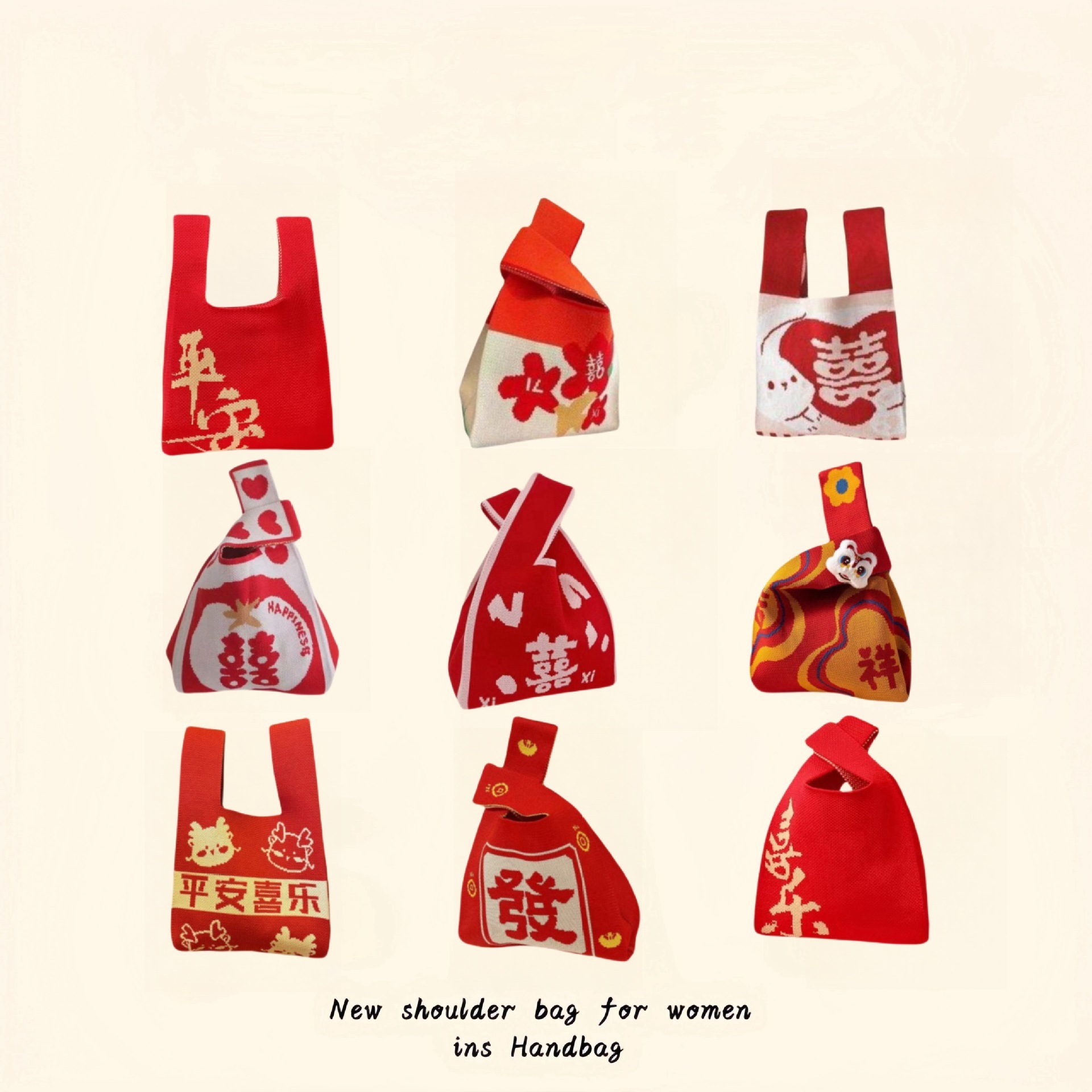 新年の大吉イタリアの赤いお祝いのニットバッグのファッション