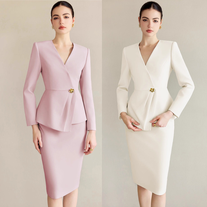 ADアンコラ赤いスーツのワンピース2点セットの女性職業服2024新型公務員作業服秋