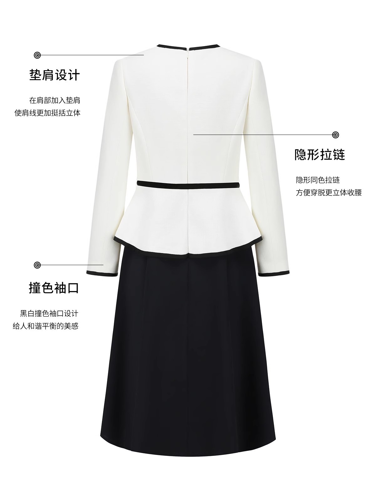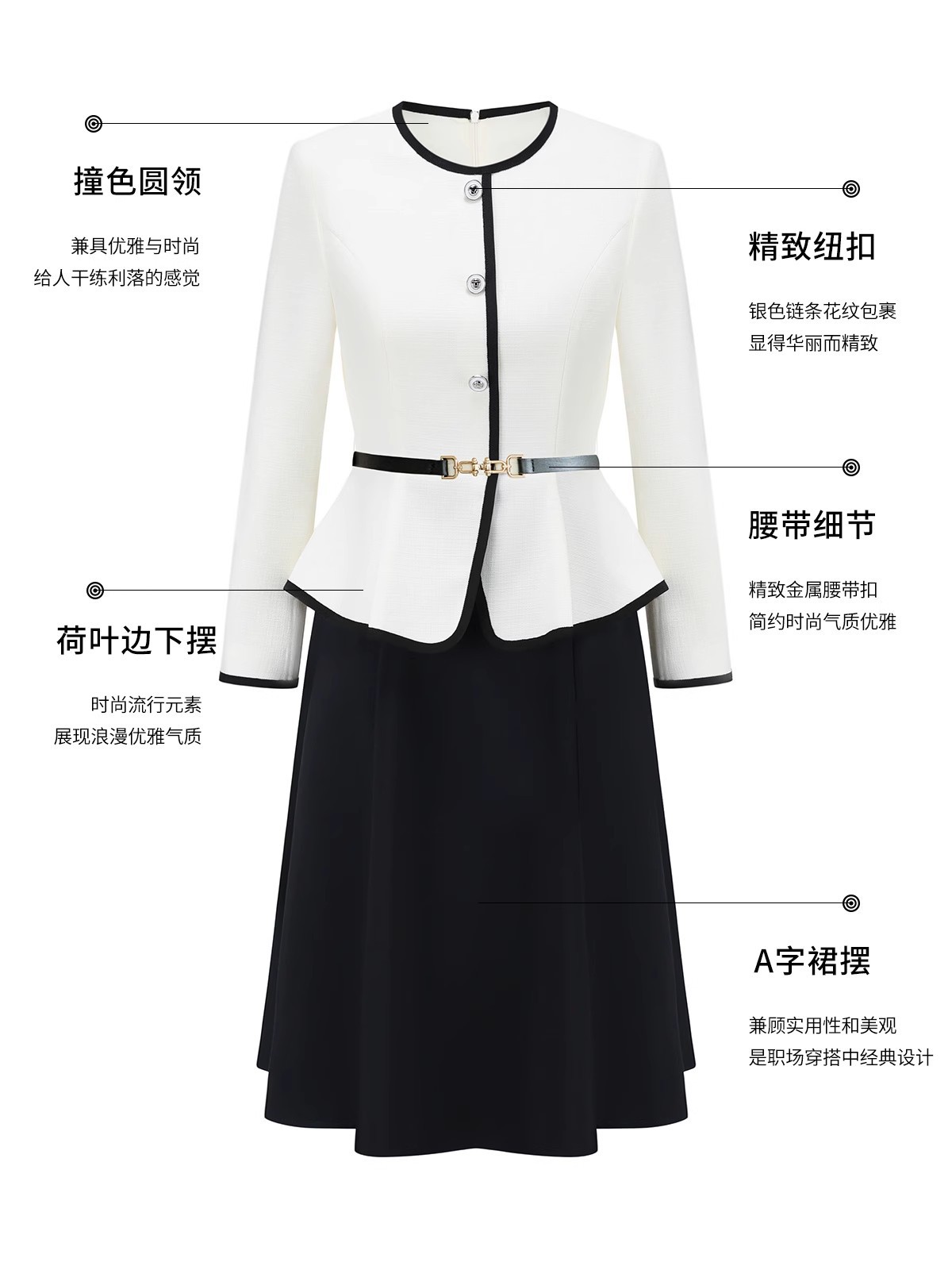 春秋新款小香风时尚假两件拼色职业女士连衣裙减龄显瘦圆领伞裙OL
