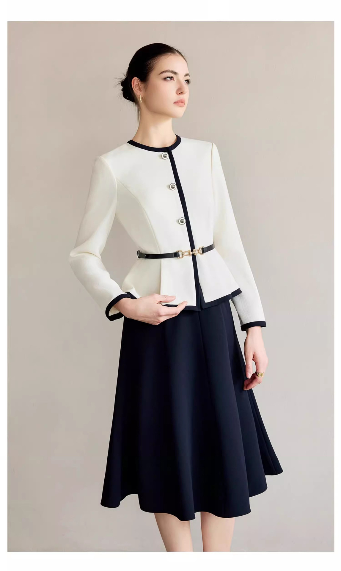时尚春秋新款小香风圆领职业女裙套装短款气质名媛小西服伞裙OL