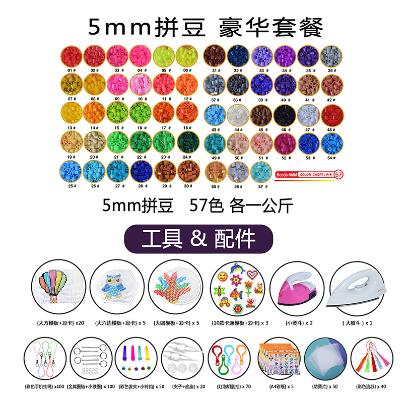クロスボーダー豆手作りdiy豆5mmバルクハマビーズ熱融珠融合豆補充バッグセット卸売り