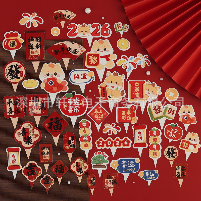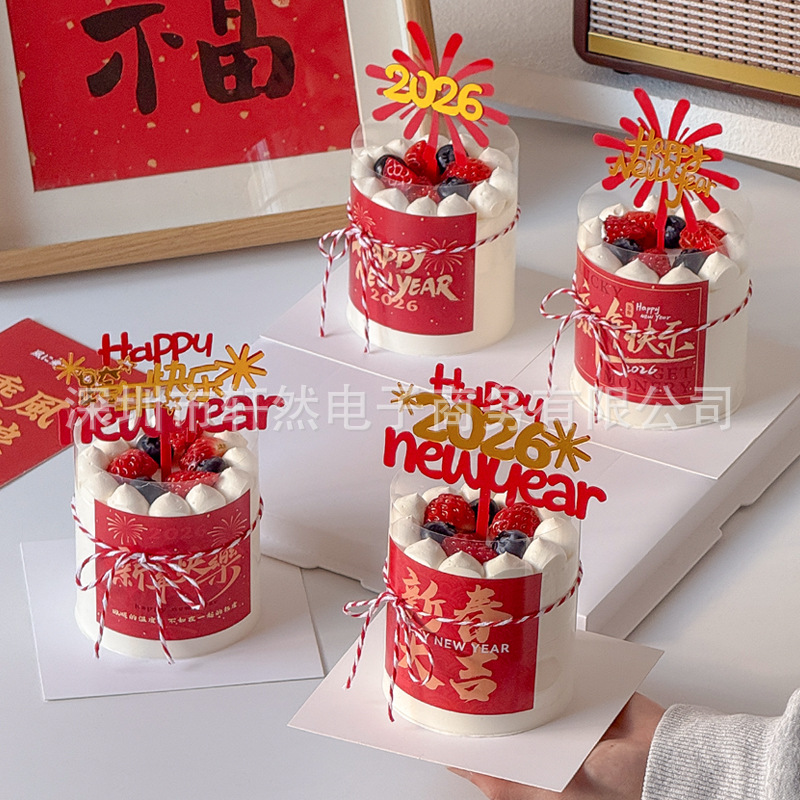 2026新年快乐贴纸蛋糕装饰马年跨年元旦春节礼花亚克力插牌插件