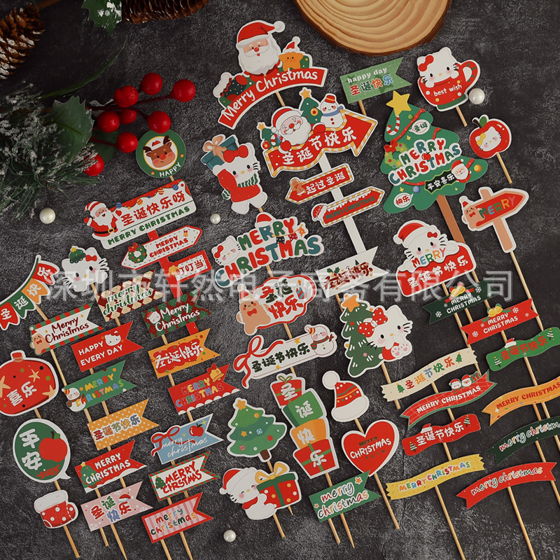 轩然版权圣诞节路牌蛋糕装饰插牌圣诞老人圣诞树圣诞kt猫甜品插件