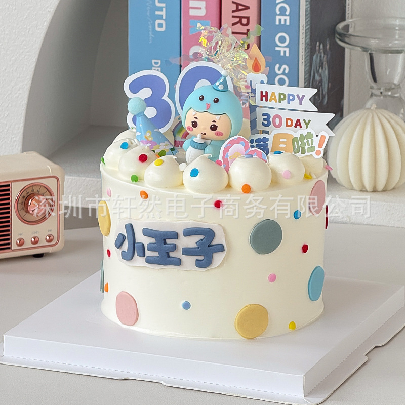 ソフトクリーム青蛇赤ちゃん満月百日ケーキ装飾男女の子生肖蛇30日デザート台焙煎プラグイン