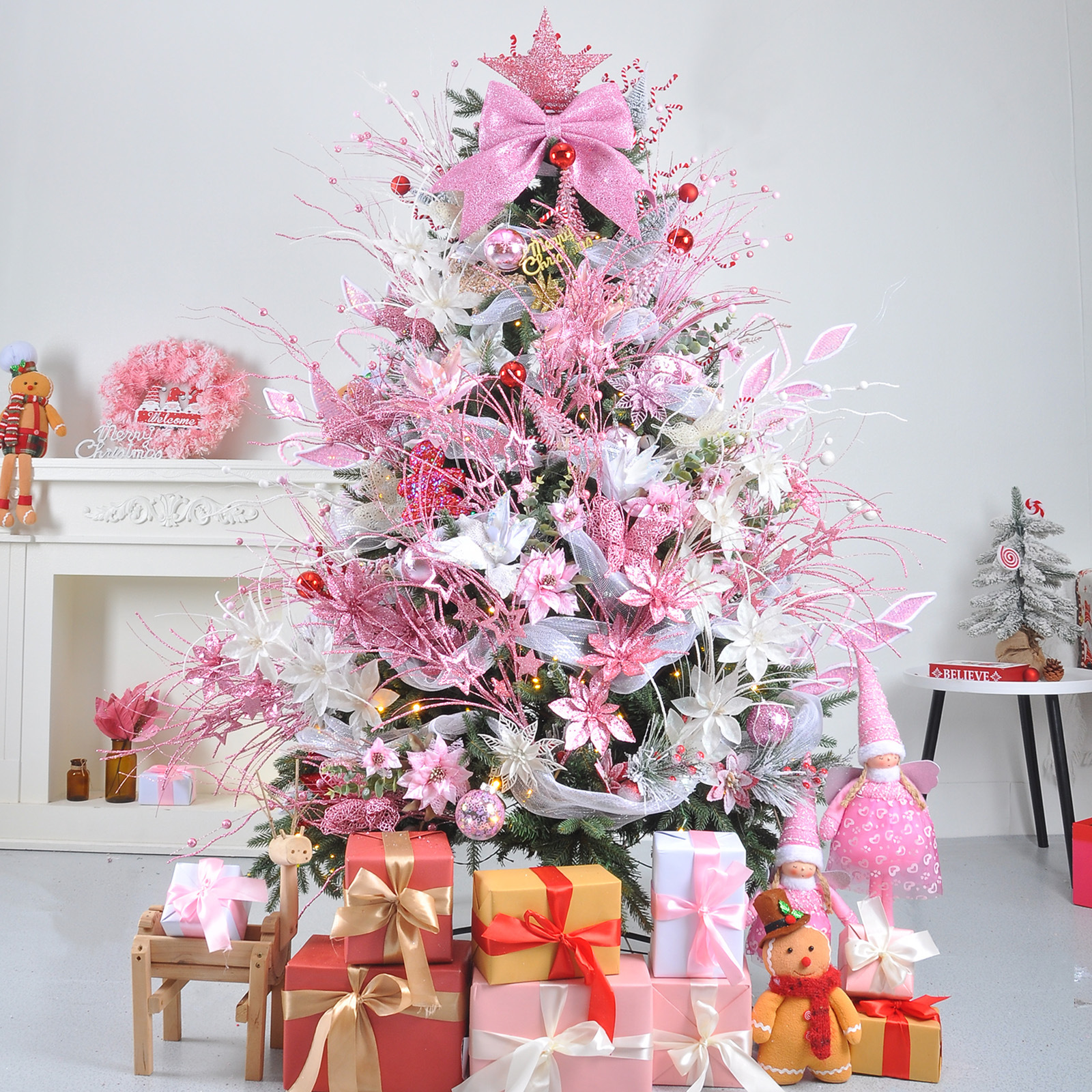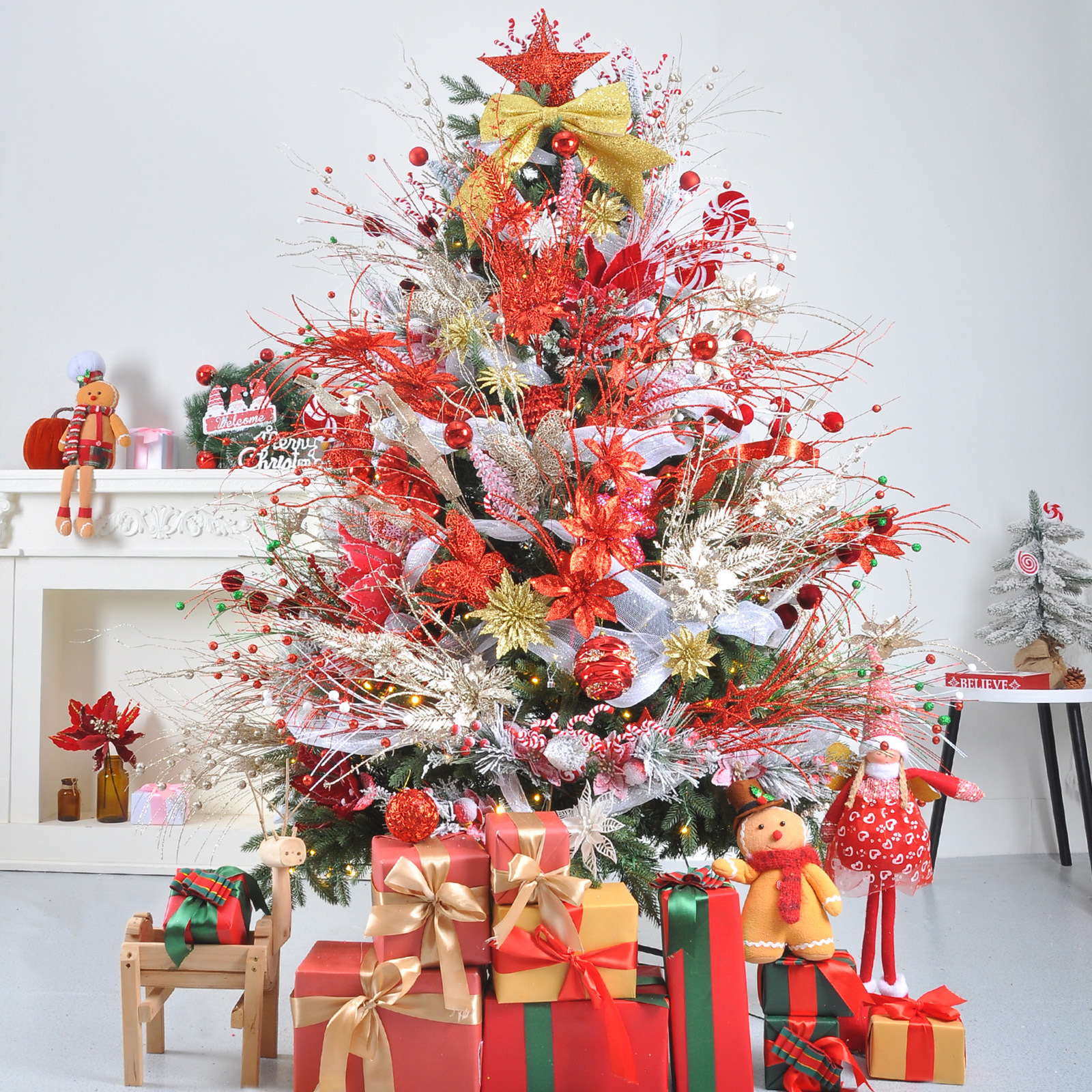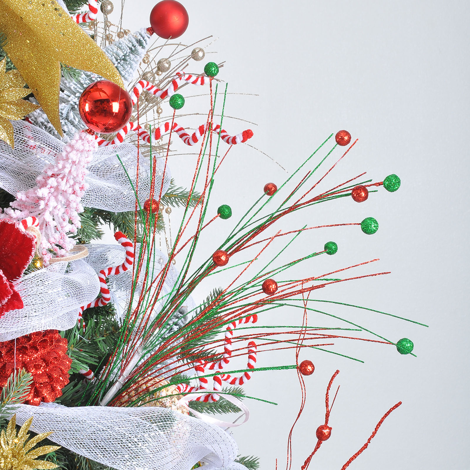 跨境圣诞树挑潘帕斯草绿色精灵圣诞树装饰 卷发茎红球新品格林奇