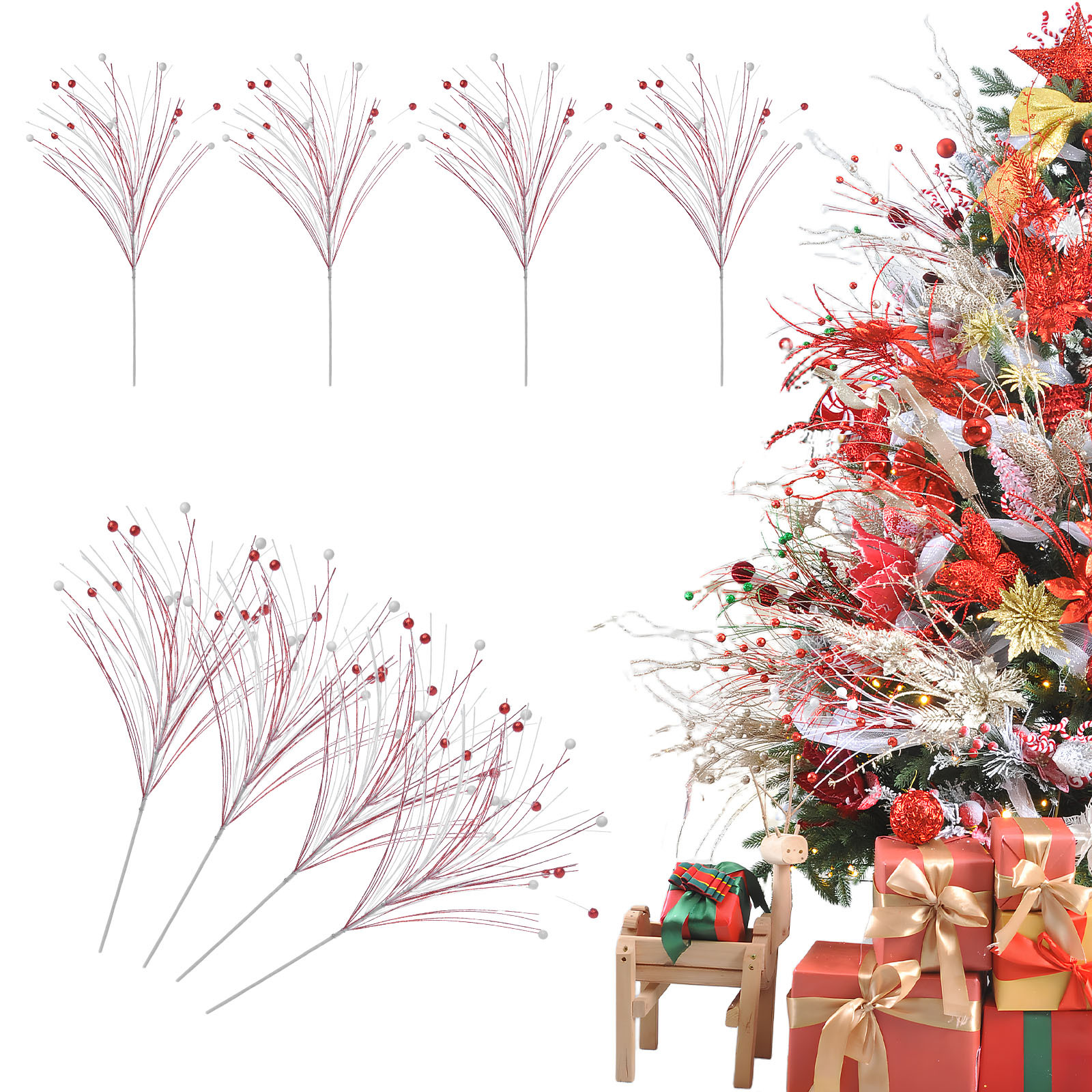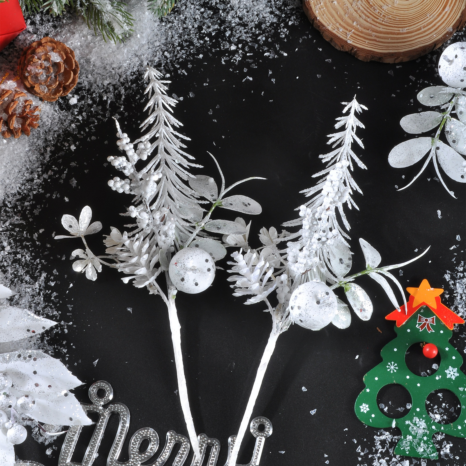 新年插枝装饰闪粉圣诞亮片龙柳树枝圣诞烟花插枝设计款圣诞树挂件