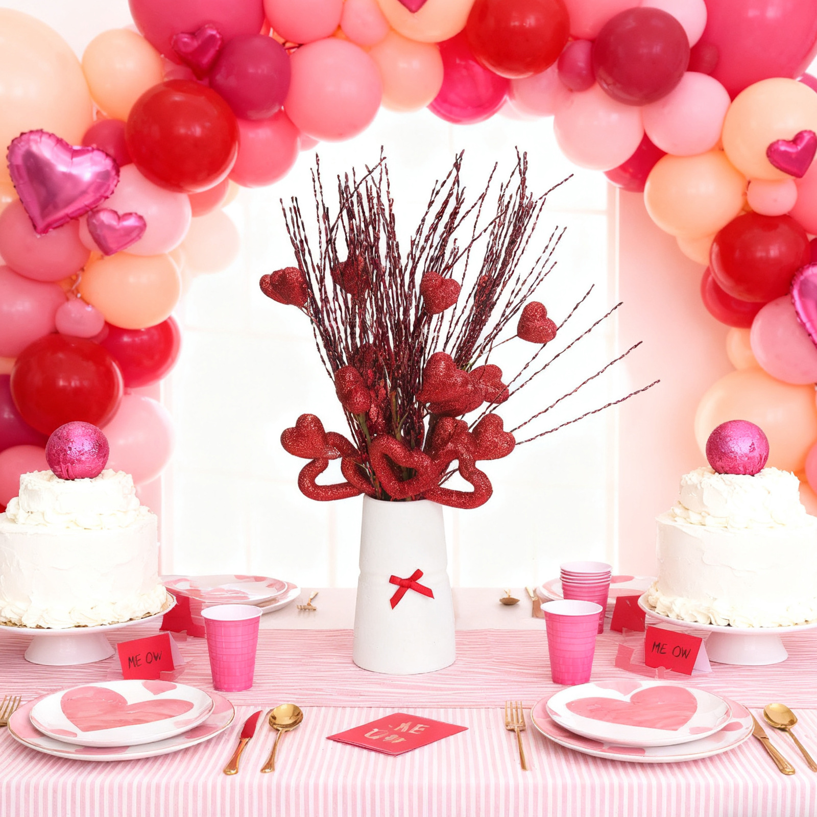 亚马逊跨境情人节插枝红色心形浆果情人节心形插枝约会家居装饰