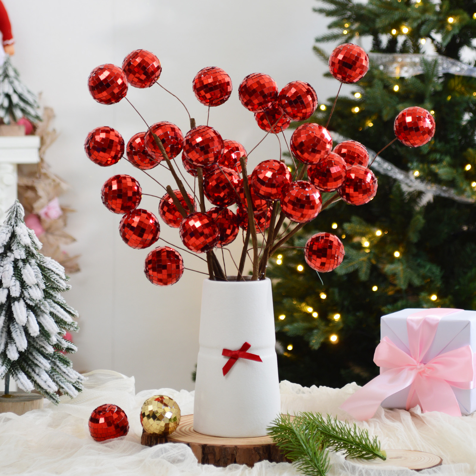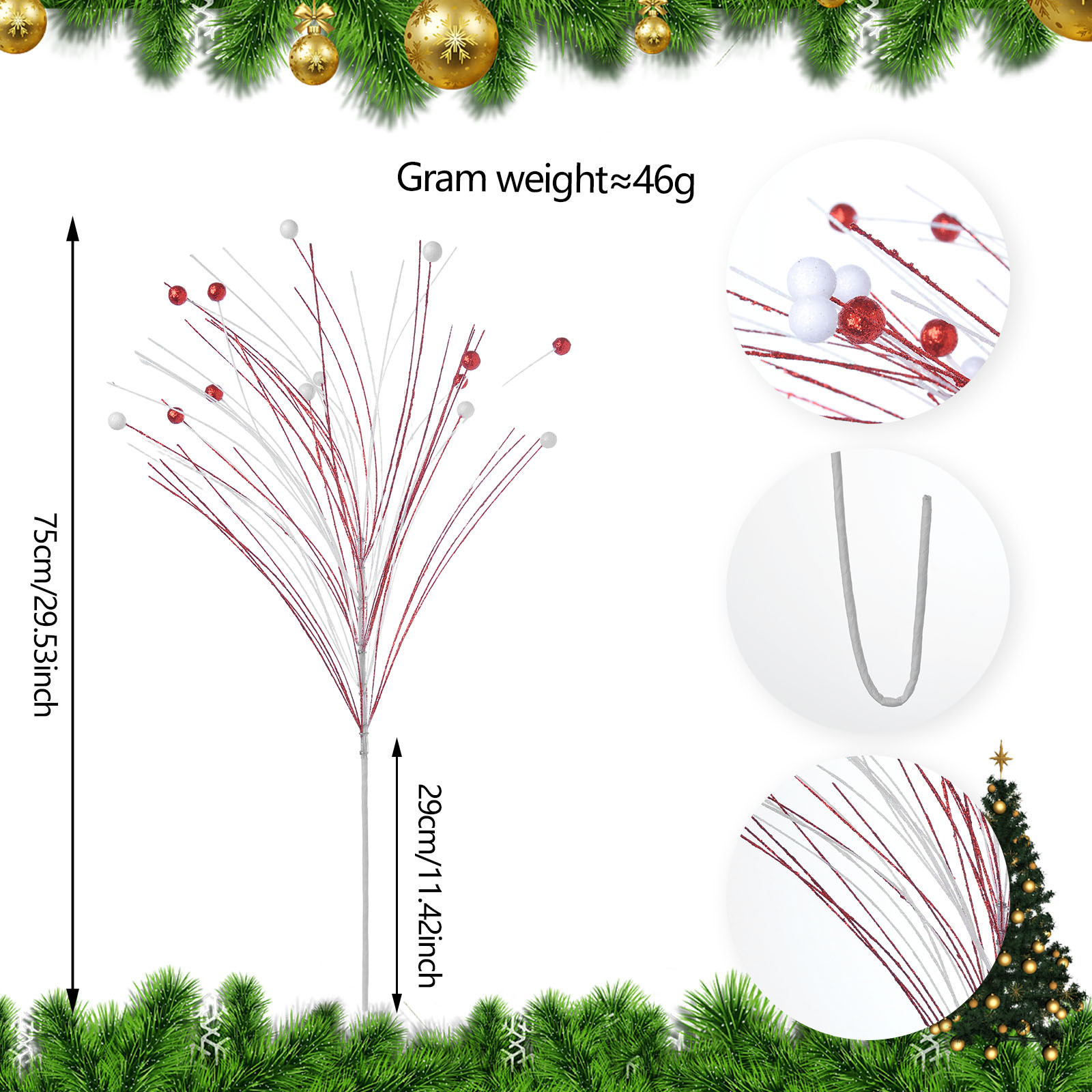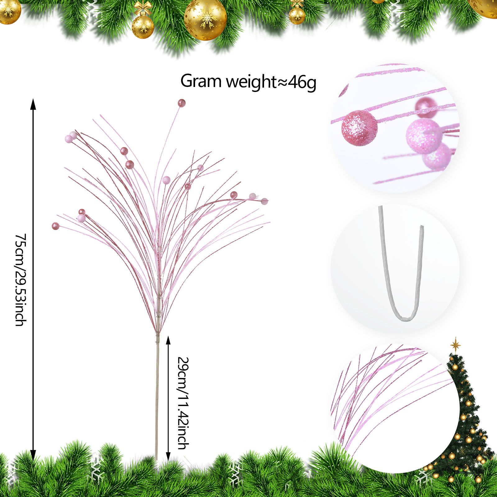 跨境圣诞长插枝80cm跨境金粉圣诞节派对装饰大亮片浆果亮片把束