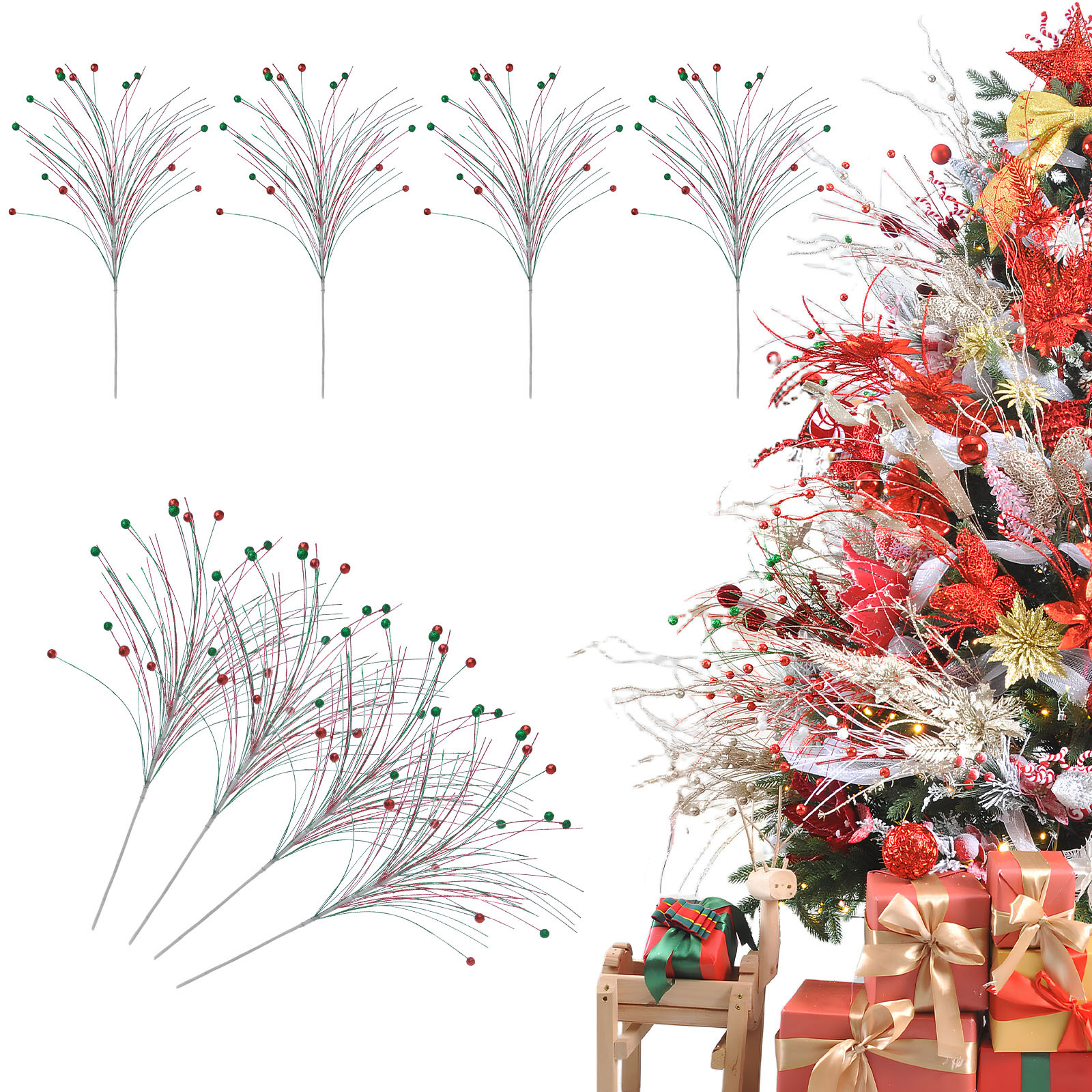 圣诞节装饰金粉圣诞瀑布烟花流苏插枝DIY圣诞花束配件圣诞树装饰