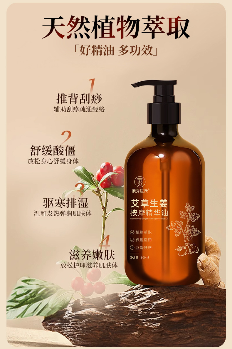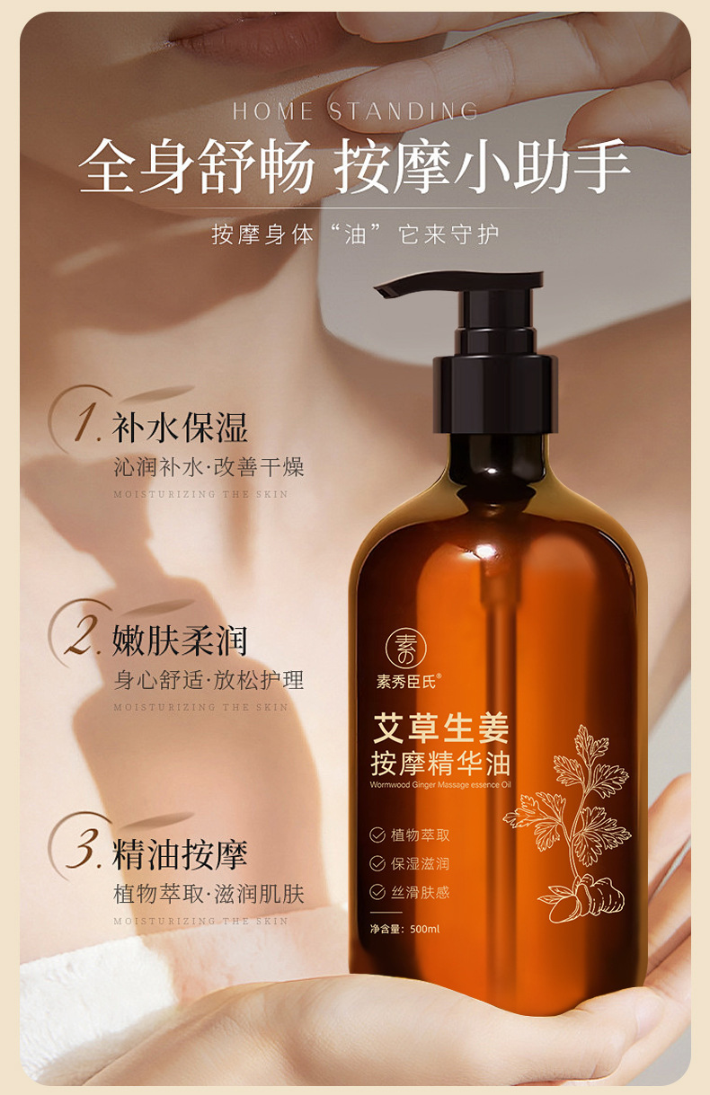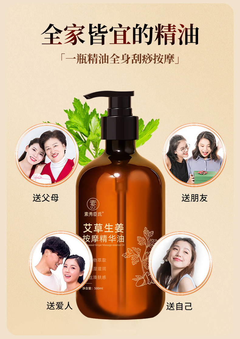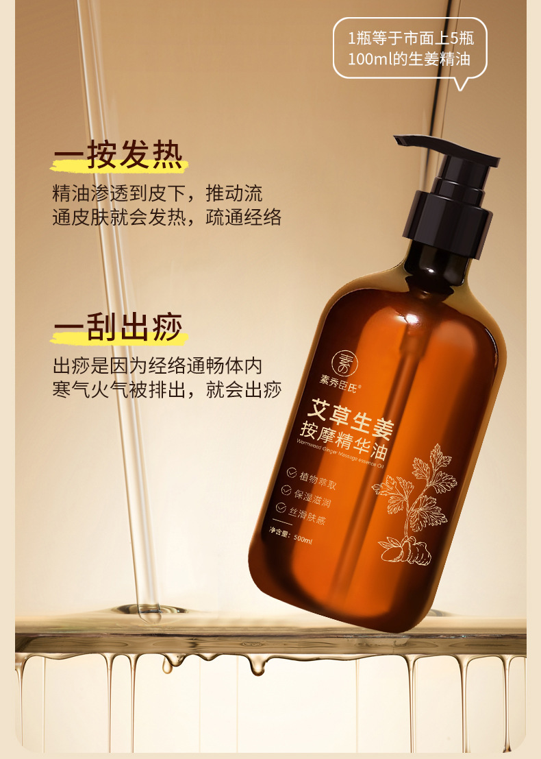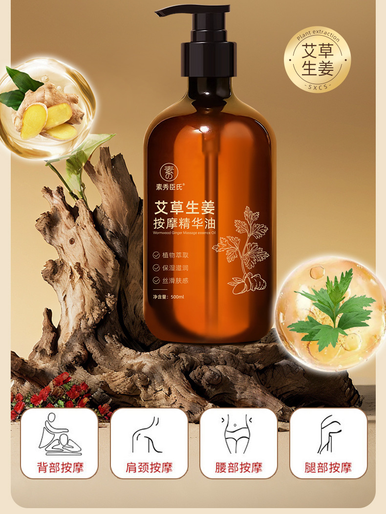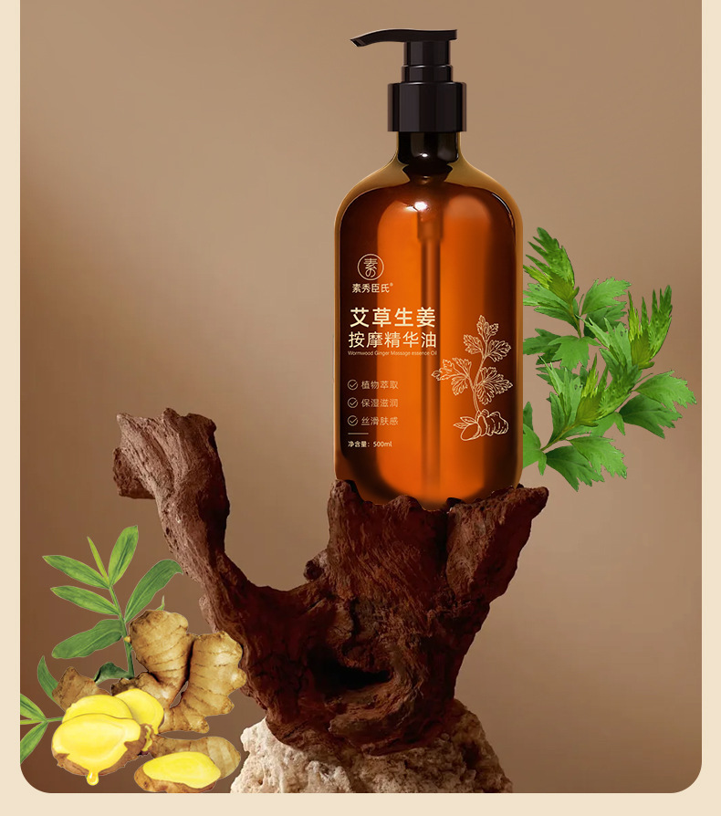 素秀臣氏艾草生姜按摩精华油全身通经络发热开背推背按摩厂家代发
