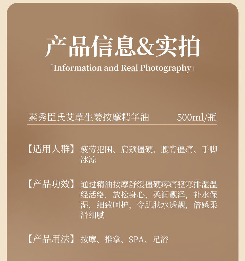 产品规格 艾草生姜按摩精华油500ml