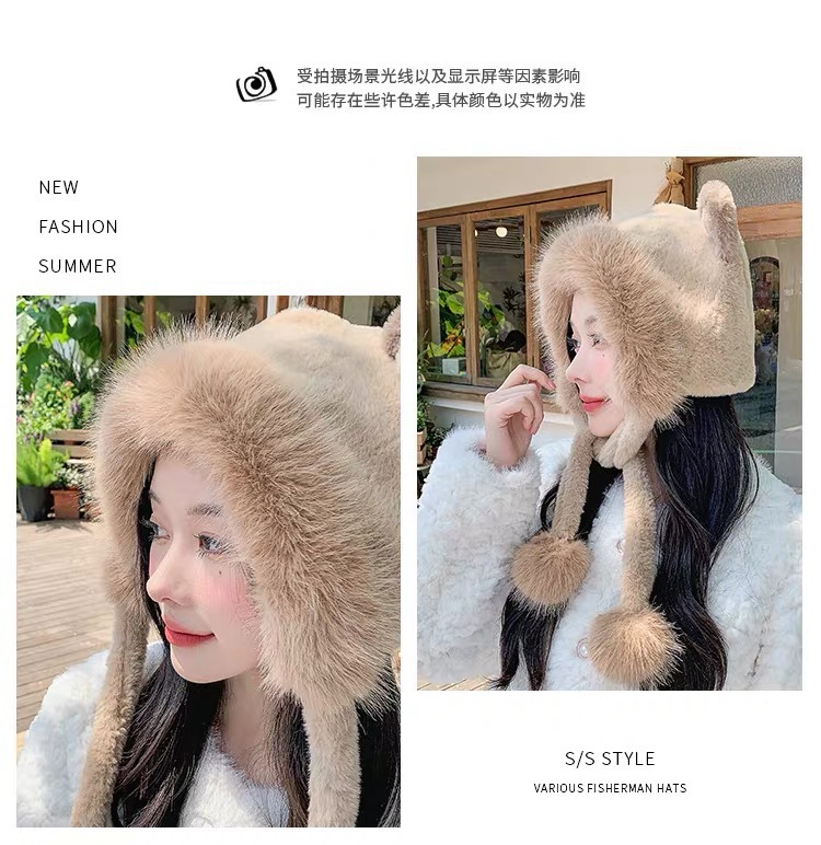 可爱毛绒帽子女冬季加绒针织毛线帽护耳保暖毛茸茸东北防寒雷锋帽