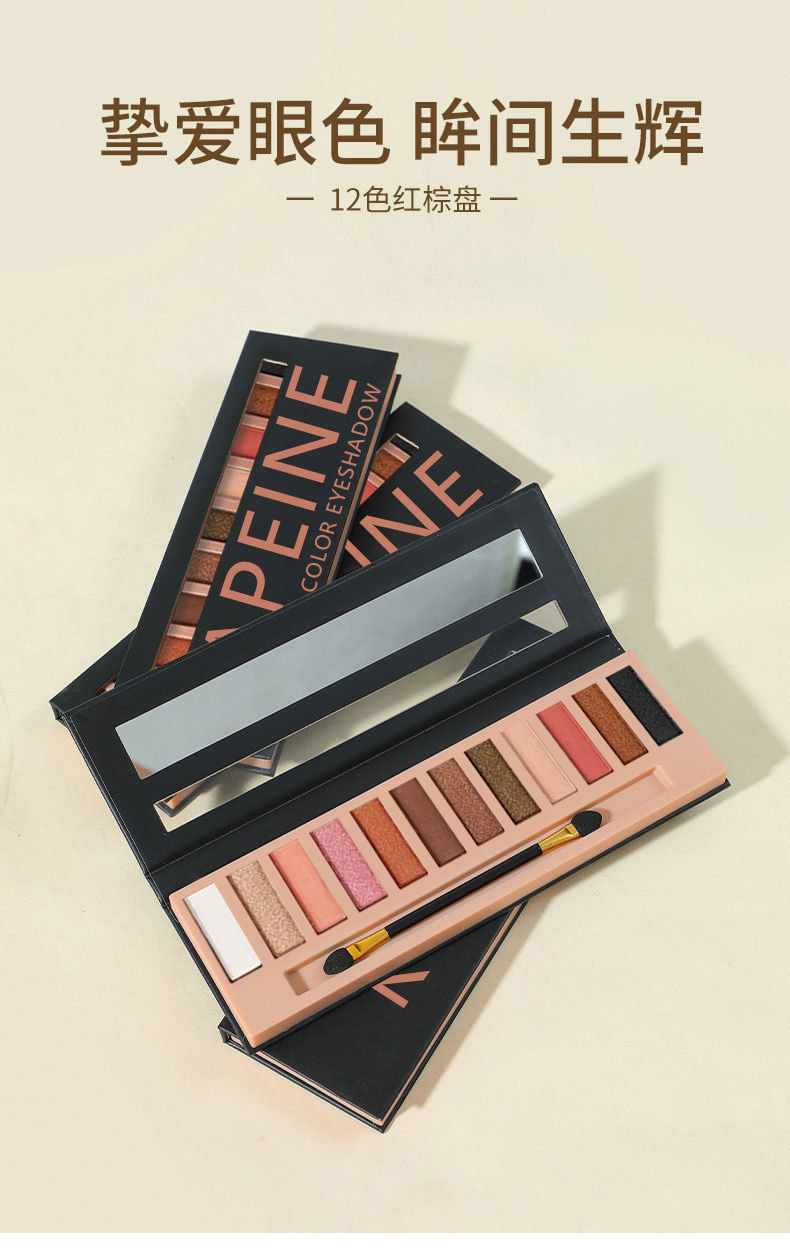 跨境专供爆款K‘APEINE十二色烟熏眼影盘哑光细闪持久持妆眼影盘