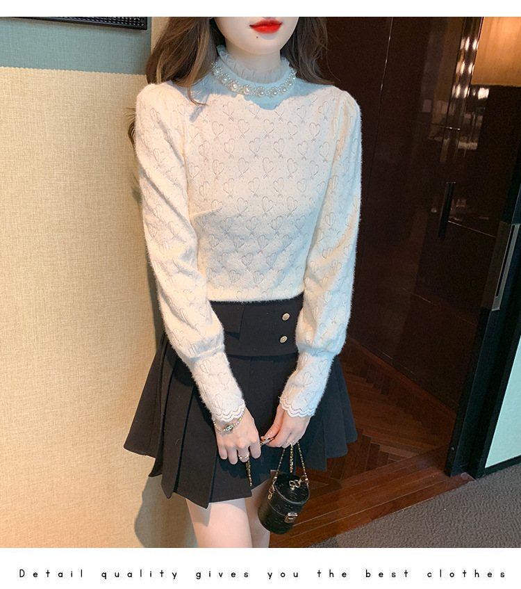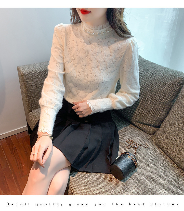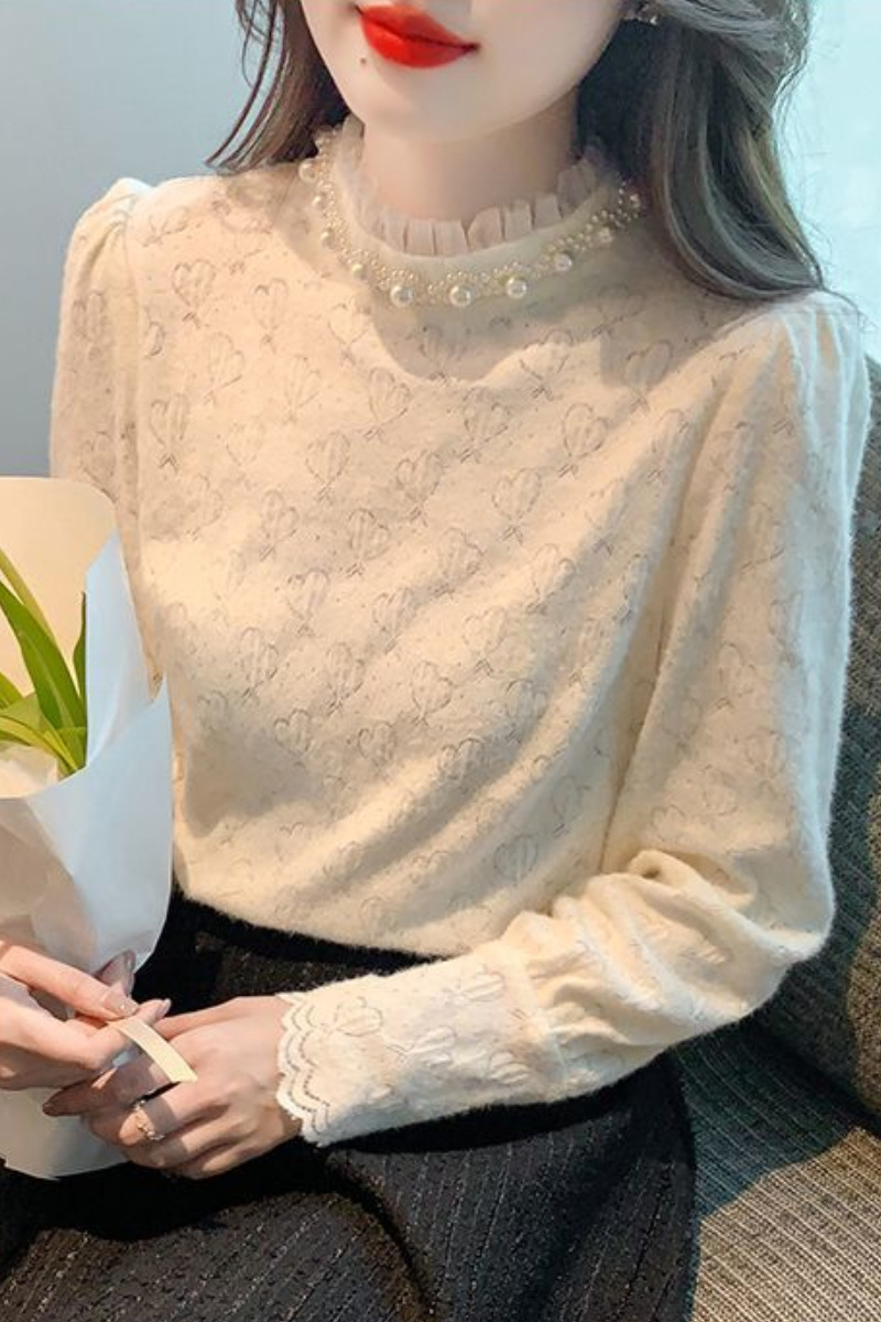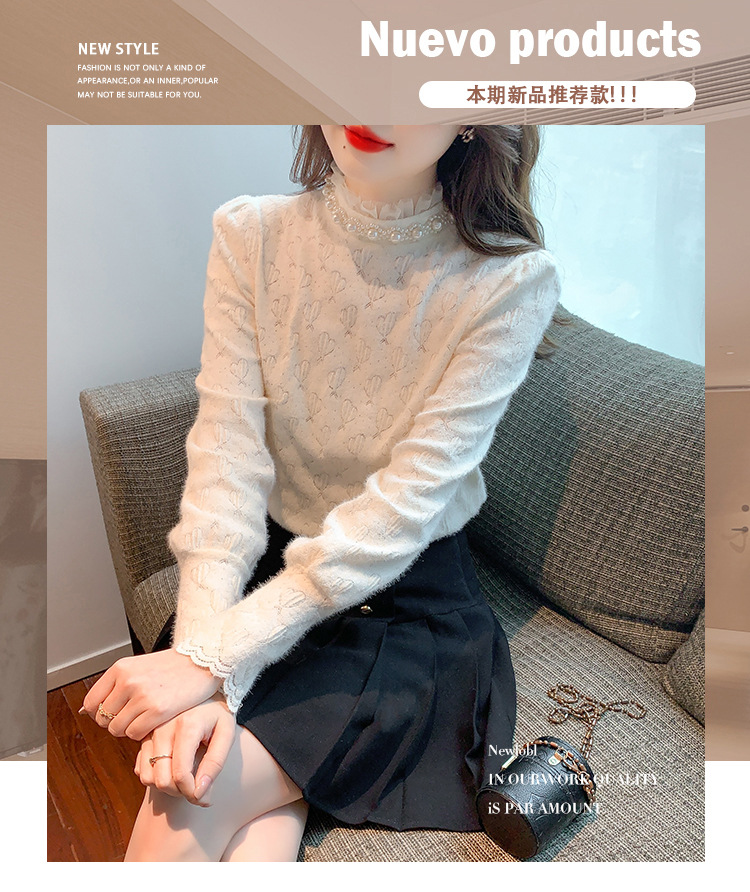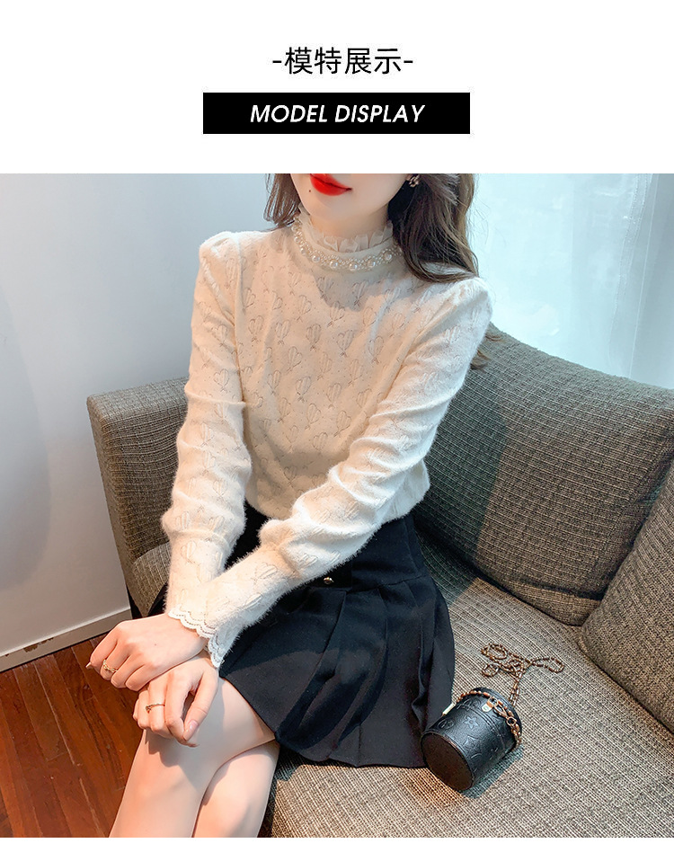 加绒加厚秋冬新款打底衫时尚韩版衬衫气质显瘦蕾丝衫百搭遮肚上衣