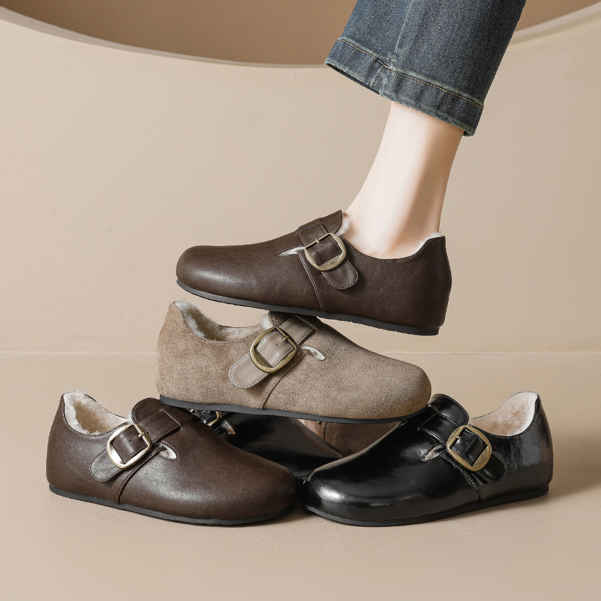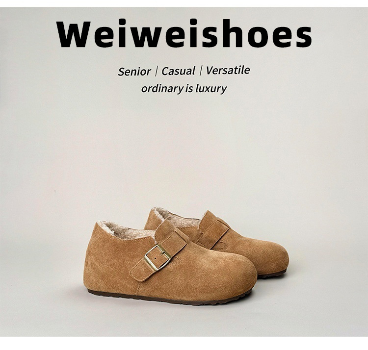 2025冬季新款超高跟勃肯鞋女时尚休闲半拖鞋女外加绒加毛平底女鞋