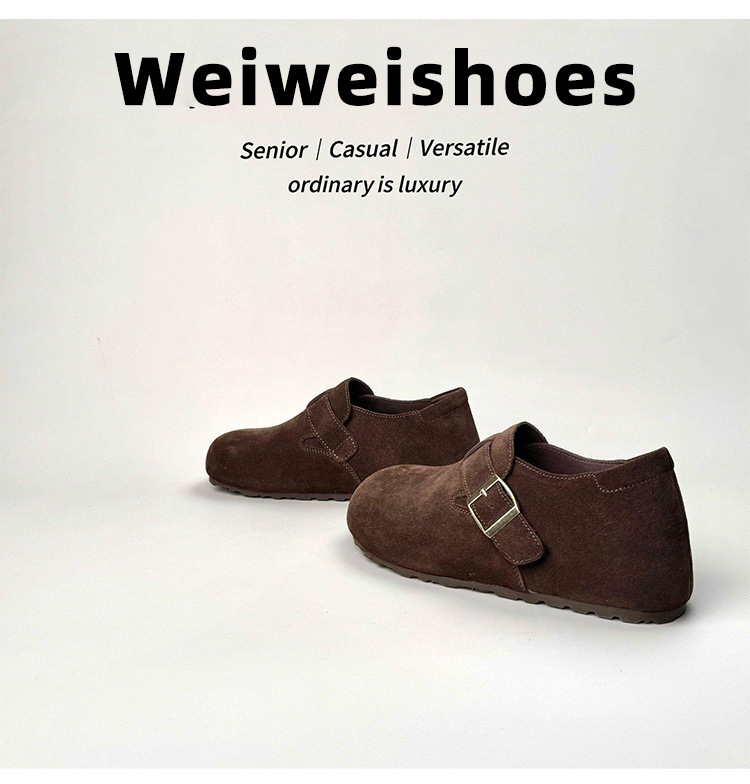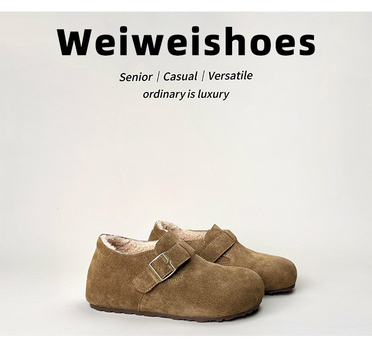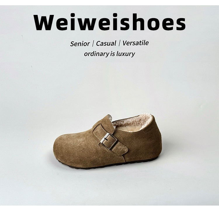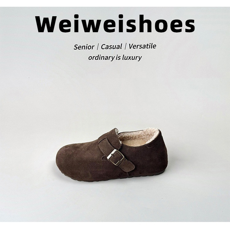 威威女郎 2852-12加绒勃肯鞋女冬季厚底复古内增高毛绒保暖毛毛鞋