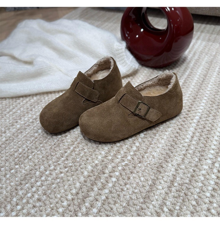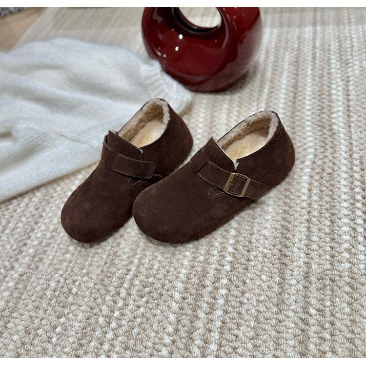 オールインクルーシブのビルケンシュトック風シューズ、秋冬用、裏起毛で暖かい厚底スノーブーツ、レトロなビルケンシュトック風シューズ、本革の毛皮靴、女性用