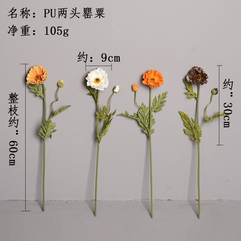 模造花pu 2頭虞美人ケシ花ウェディングホーム装飾人工花アイスランドケシ花魚美人