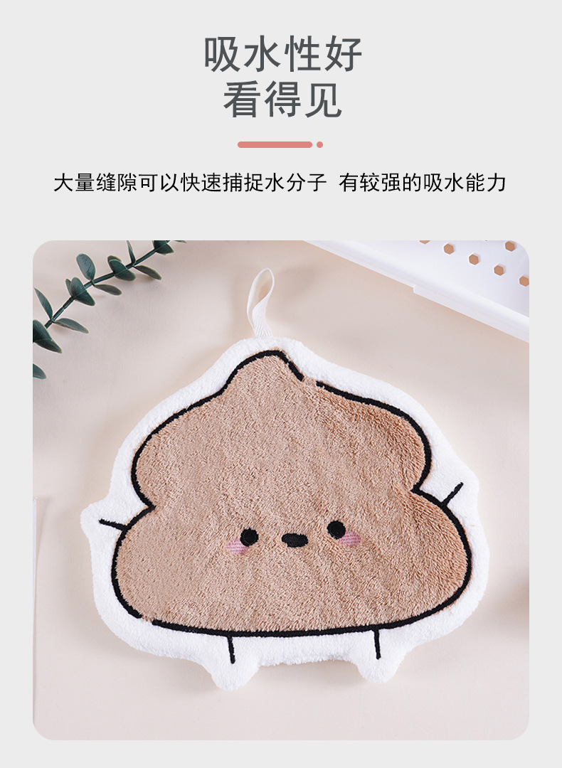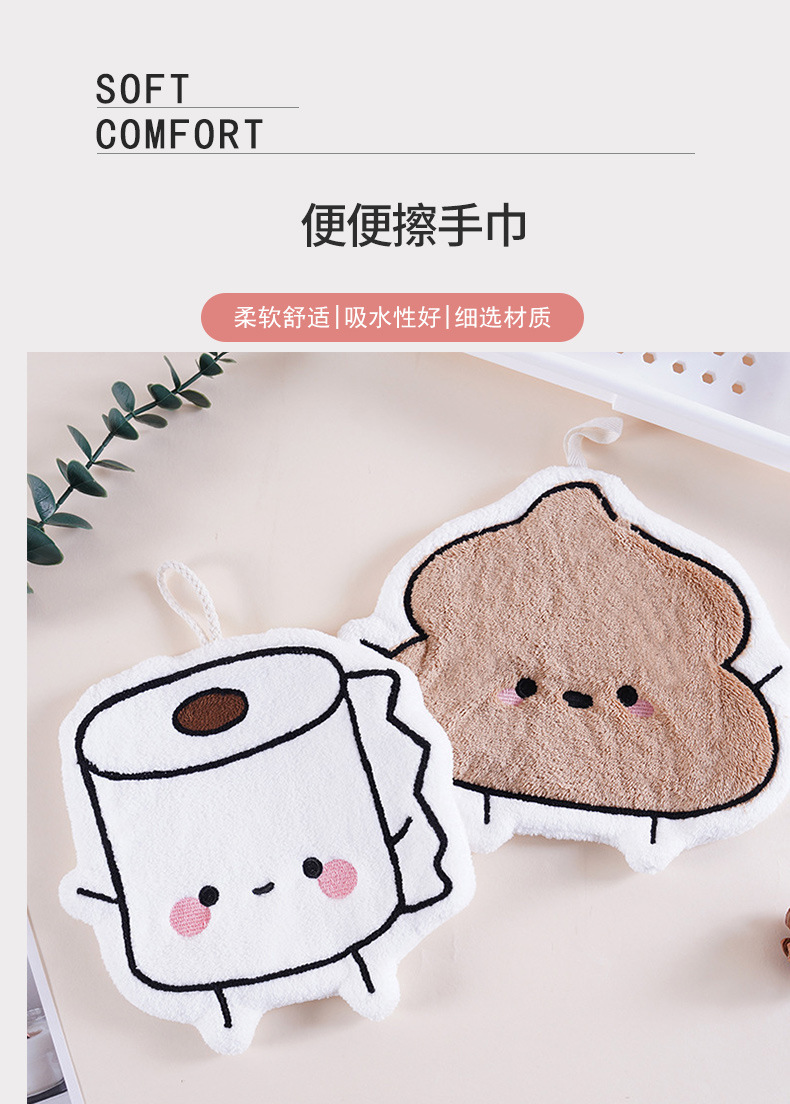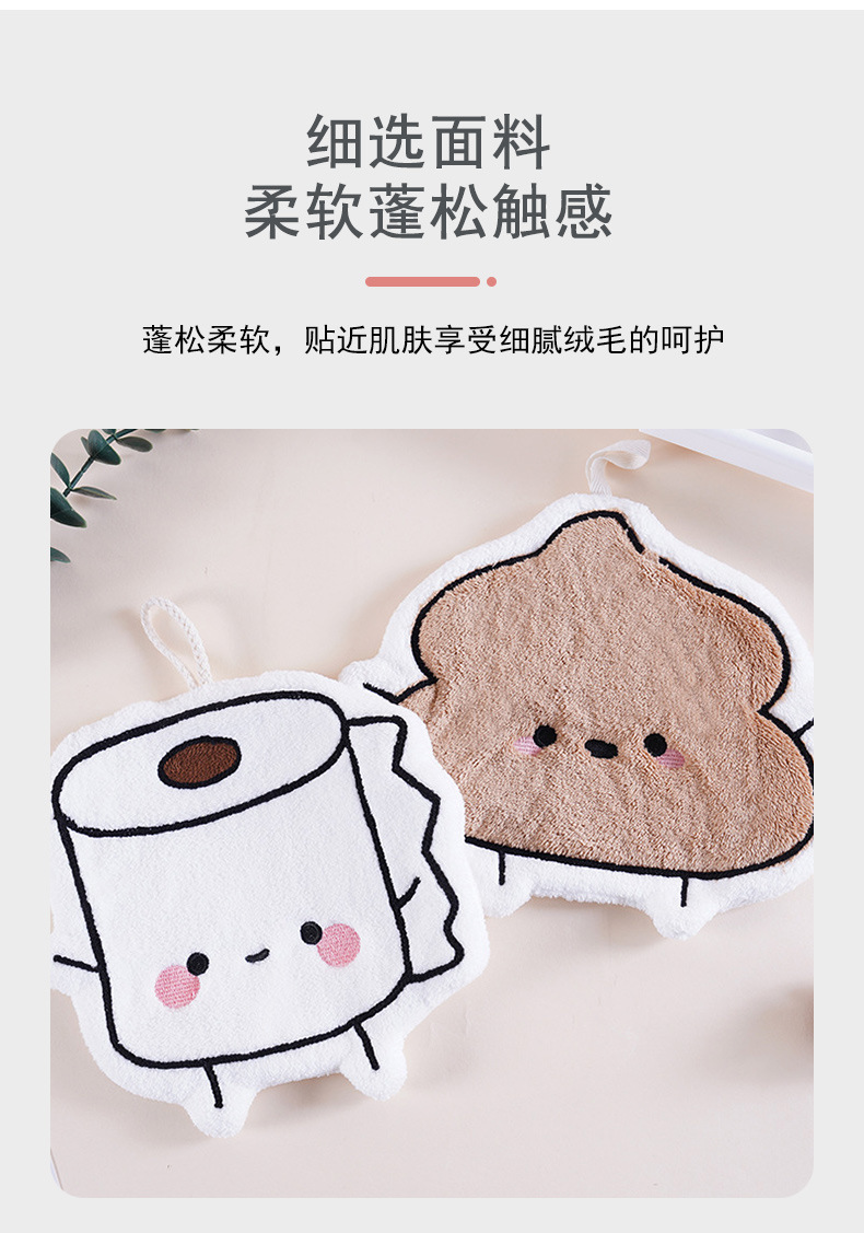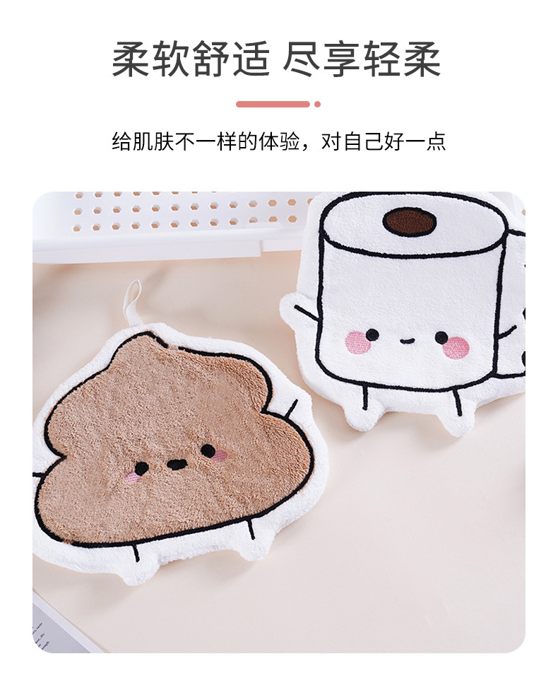 跨境创意卡通便便珊瑚绒可挂式擦手巾除臭浴室厕所小毛巾一件代发