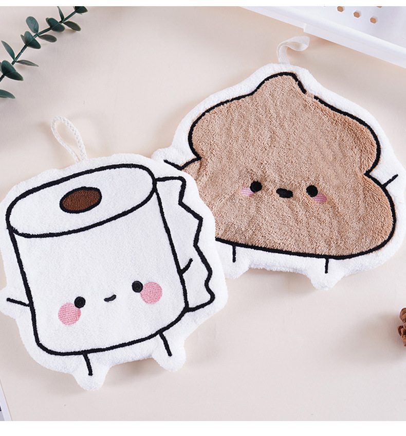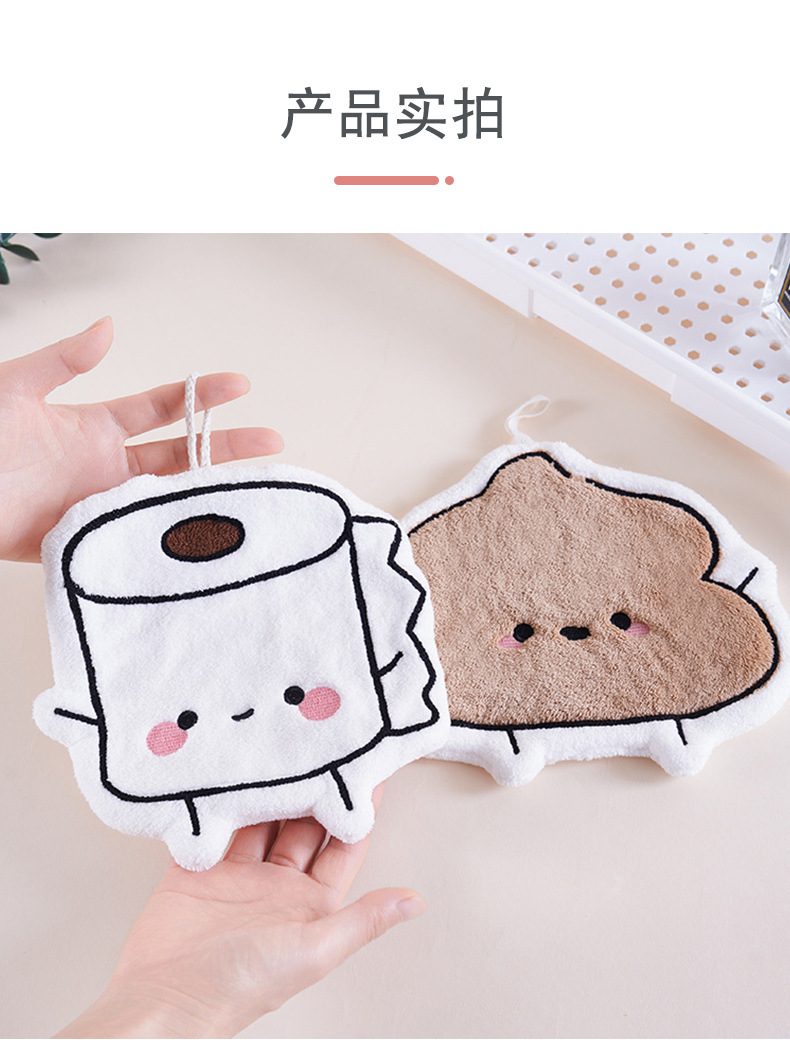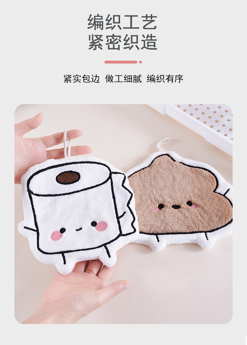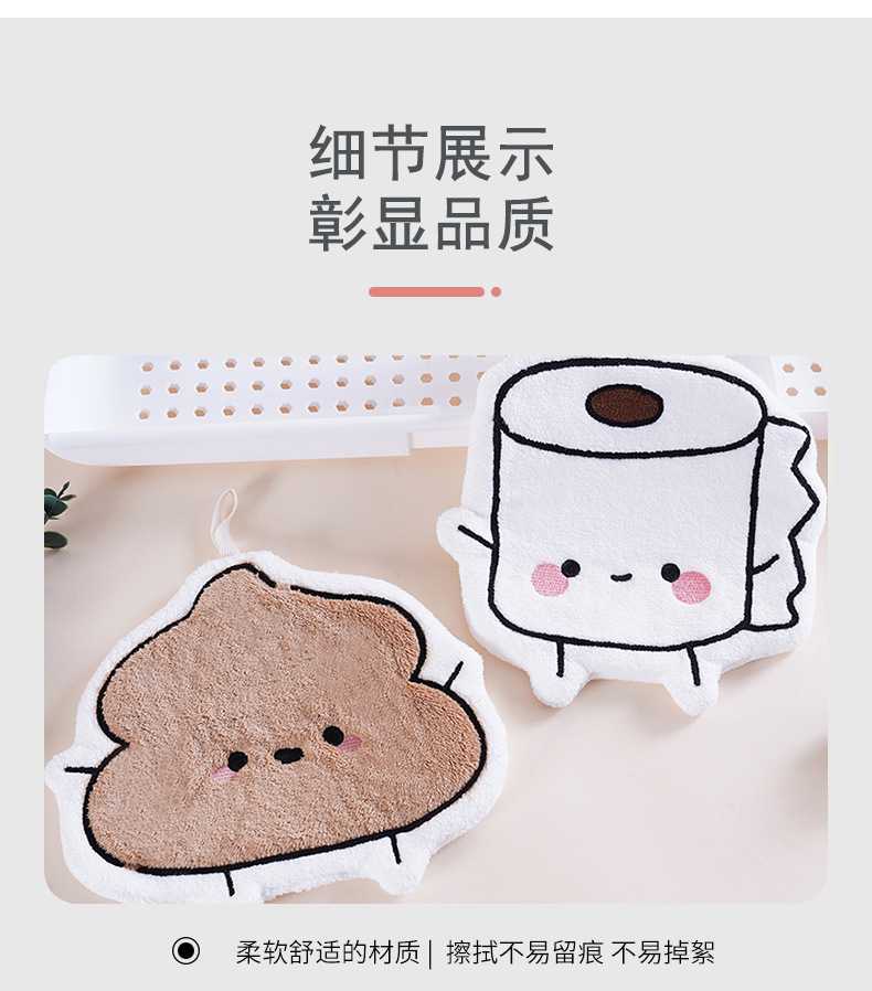 跨境创意卡通便便珊瑚绒可挂式擦手巾除臭浴室厕所小毛巾一件代发