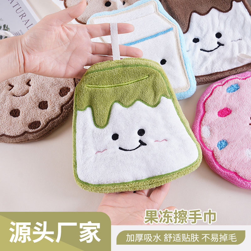 跨境批发饼干系列擦手巾珊瑚绒吸水厨房家用小毛巾加厚儿童擦手帕