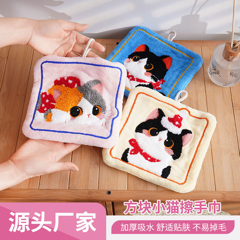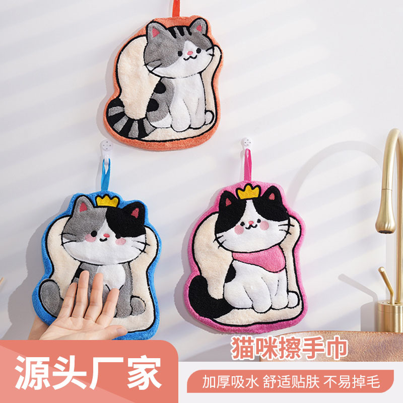 猫咪系列可爱擦手小毛巾卡通珊瑚绒挂式厨房擦手帕浴室家用擦手巾