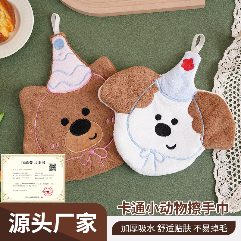 儿童动物可爱擦手巾珊瑚绒厨房浴室挂式毛巾高颜值吸水加厚手帕巾