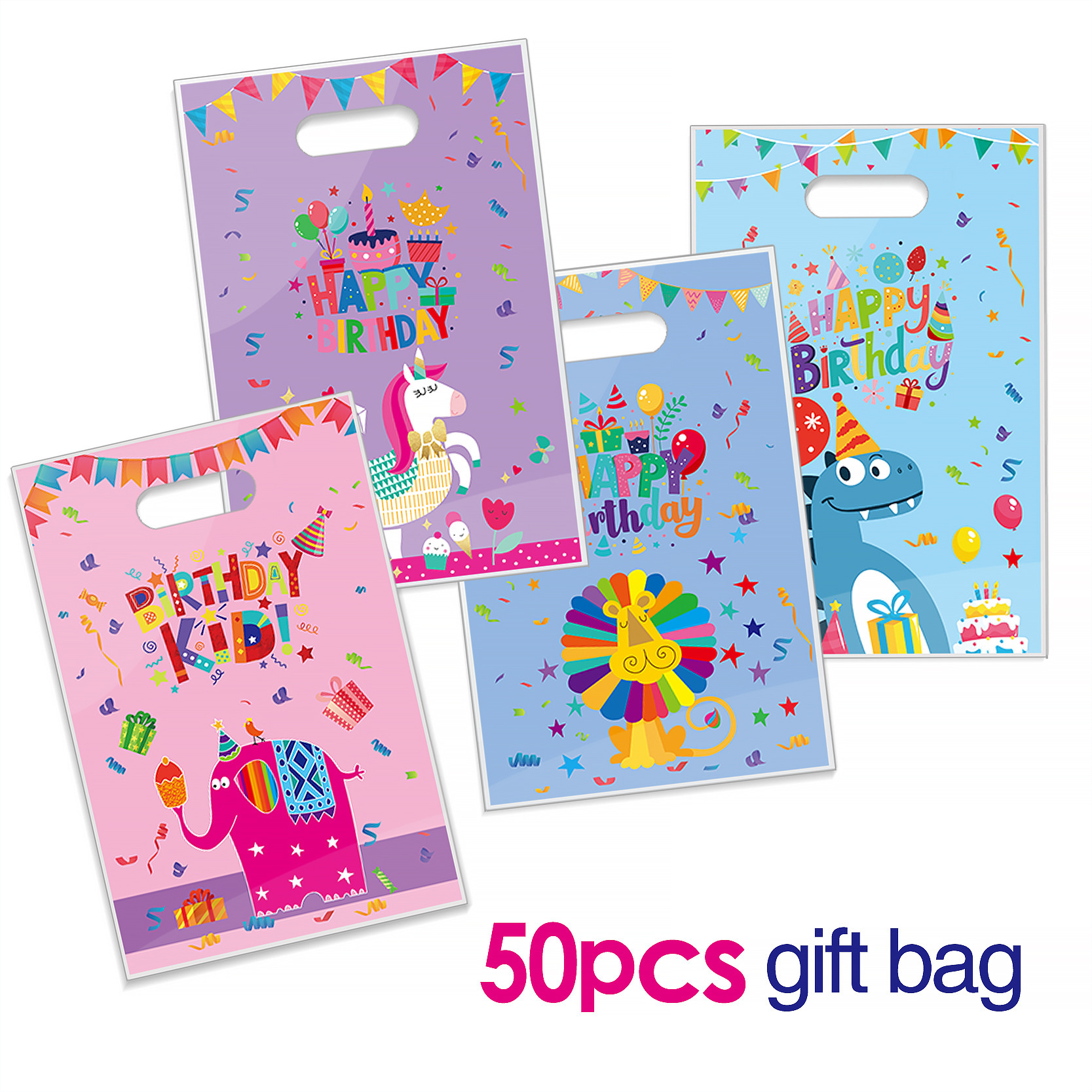 跨境卡通动物生日聚会手提袋珠光膜糖果包装袋加厚礼品礼物包装袋