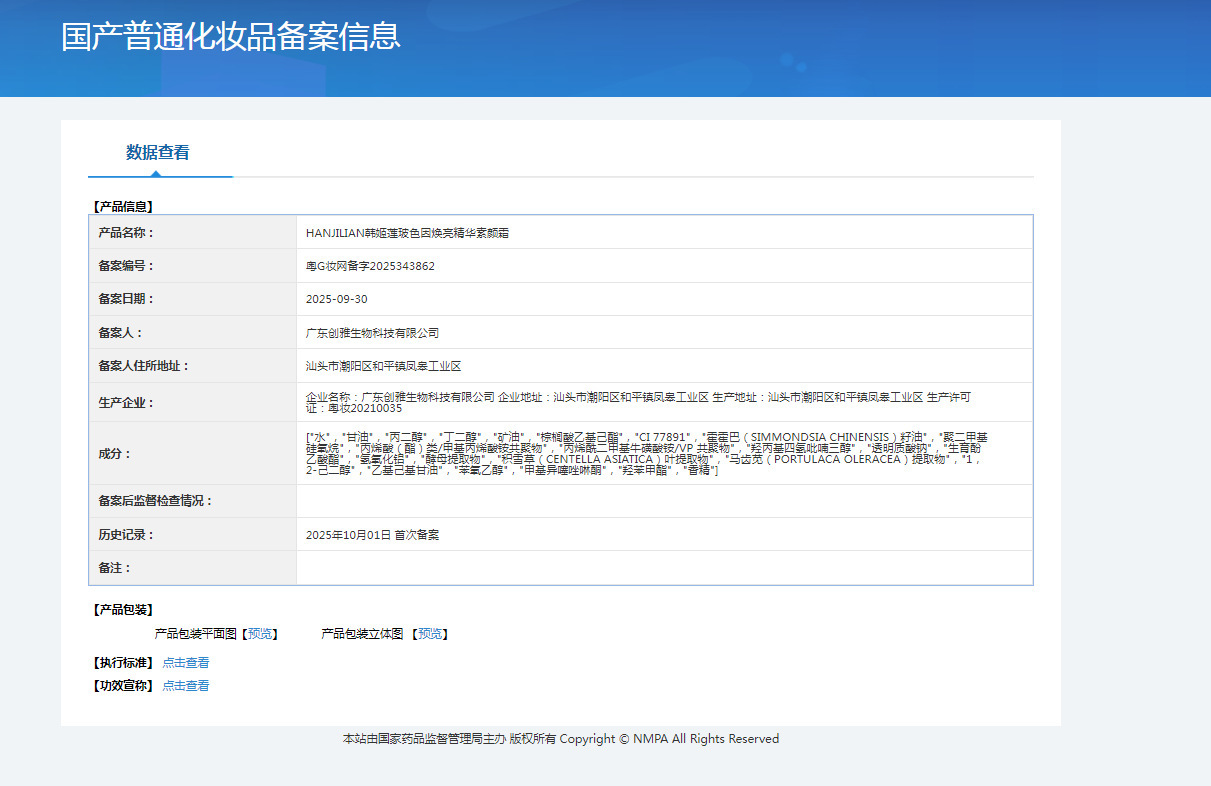 产品名称 韩姬莲玻色因焕亮精华素颜霜