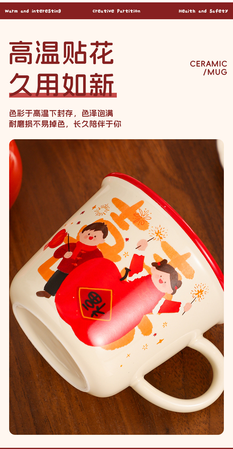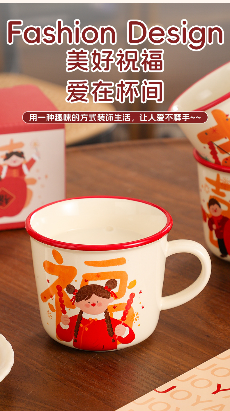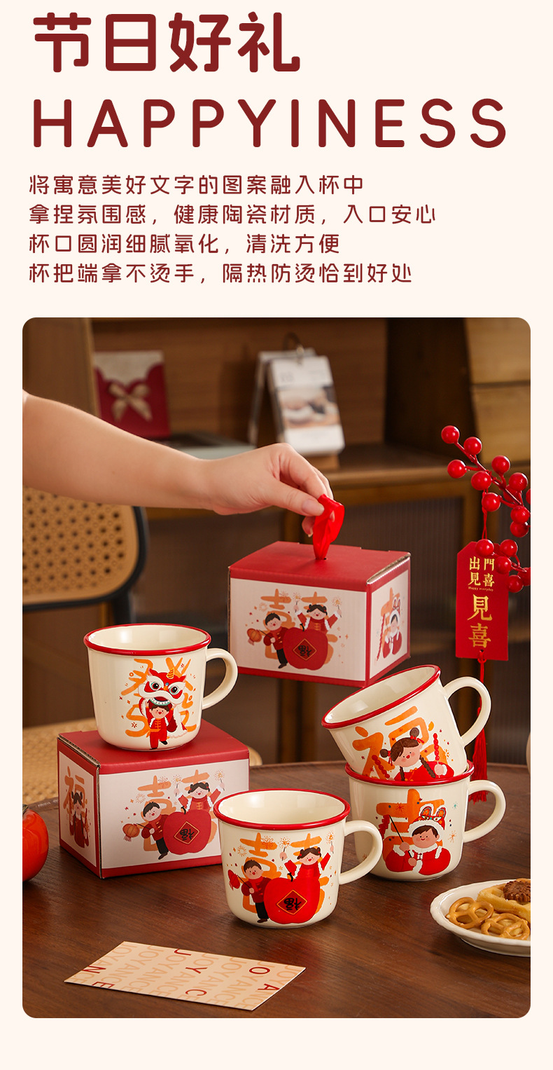 喜庆文字陶瓷马克杯高颜值喝水杯子家用早餐咖啡牛奶杯新年伴手礼