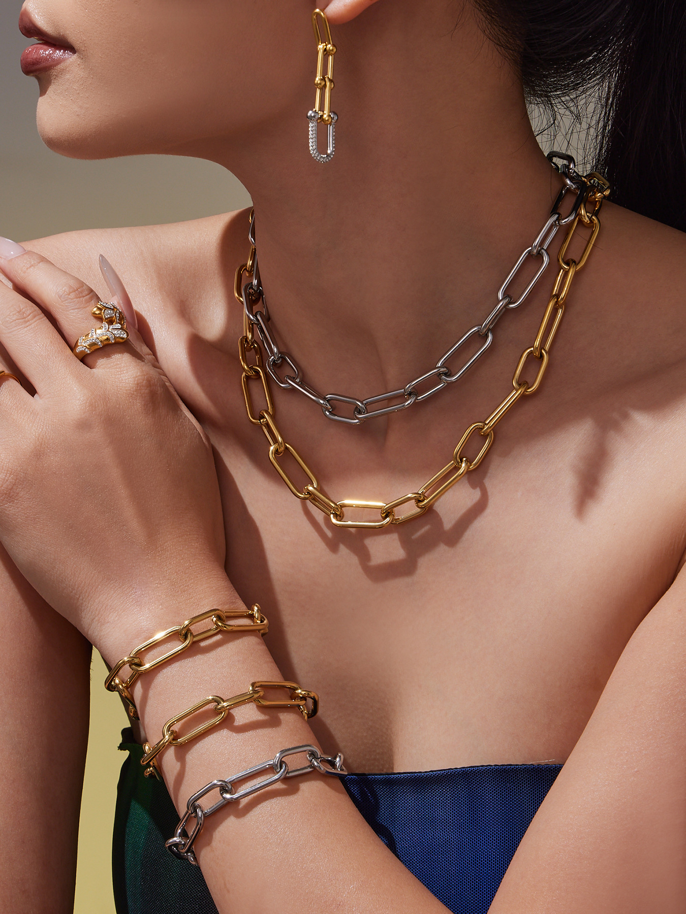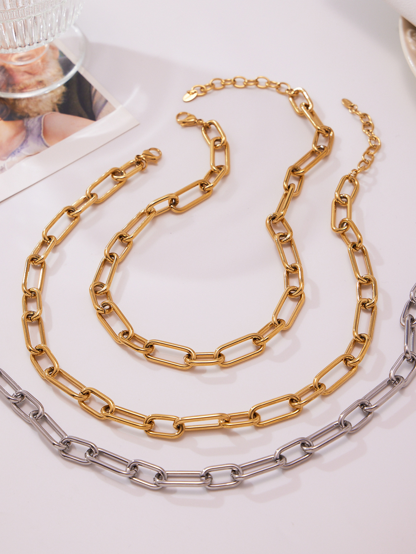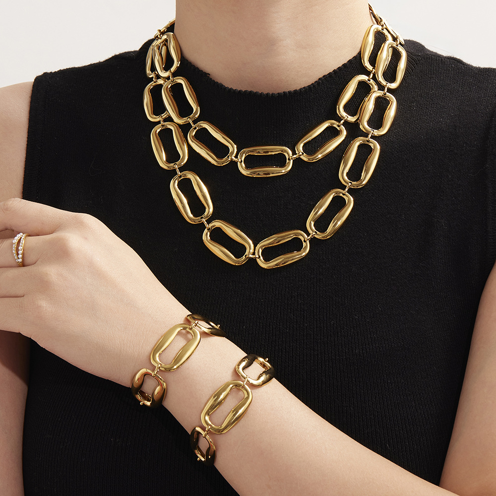 国境を越えたステンレスファッションアクセサリー真空メッキ18k色大チェーン夏女性ブレスレットネックレス金属風