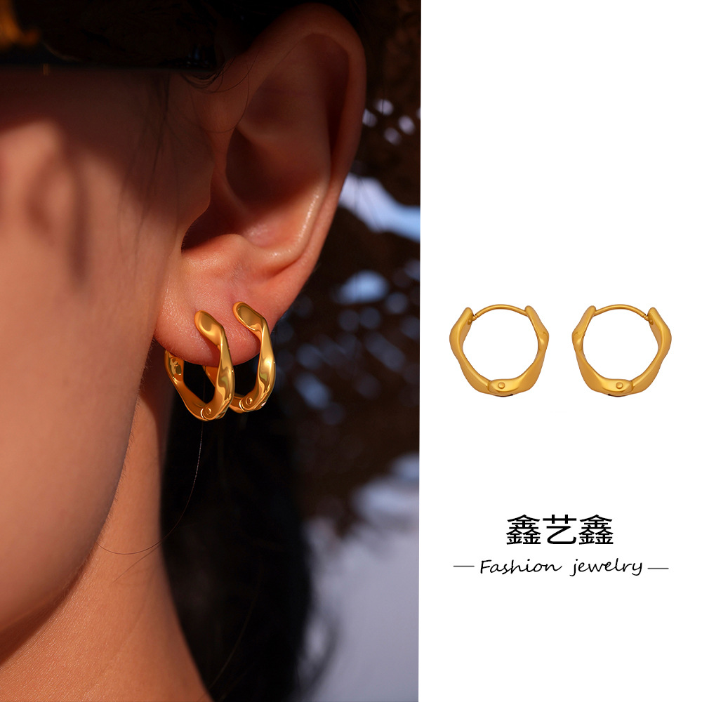 鑫芸鑫国潮新ステンレス耳輪高研磨質感イヤリングins小衆デザイン18k金メッキ耳飾り