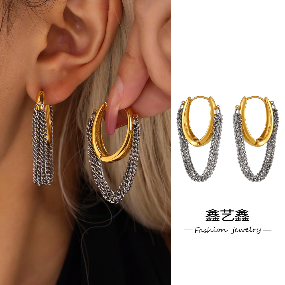 鑫芸鑫ステンレスバックル多層チェーン流蘇欧米イヤリングメッキPVD真金クロスボーダーアクセサリー現物