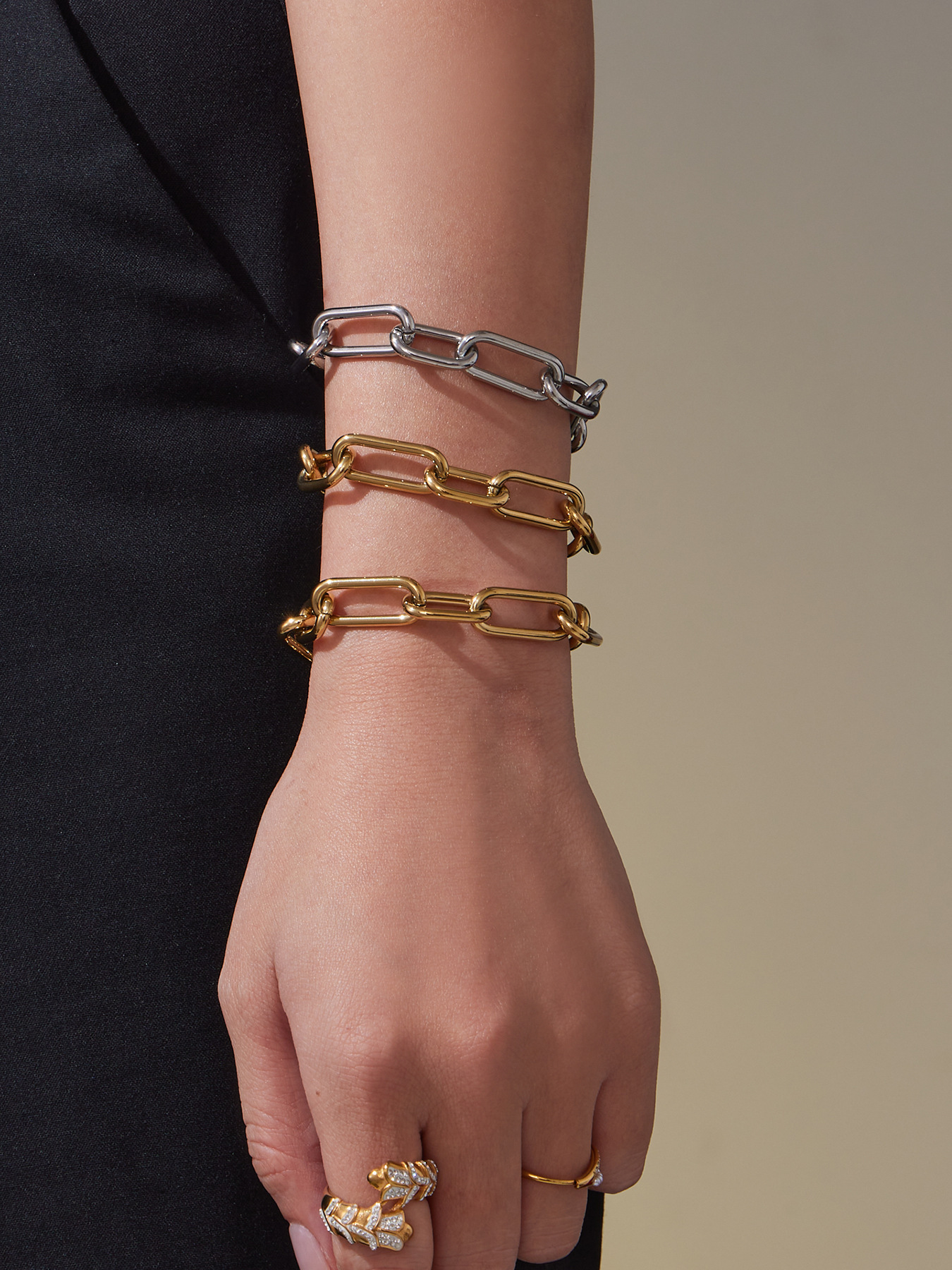 谜丽 重工加粗链手工组装手链项链环保不锈钢材质镀18k金跨境首饰