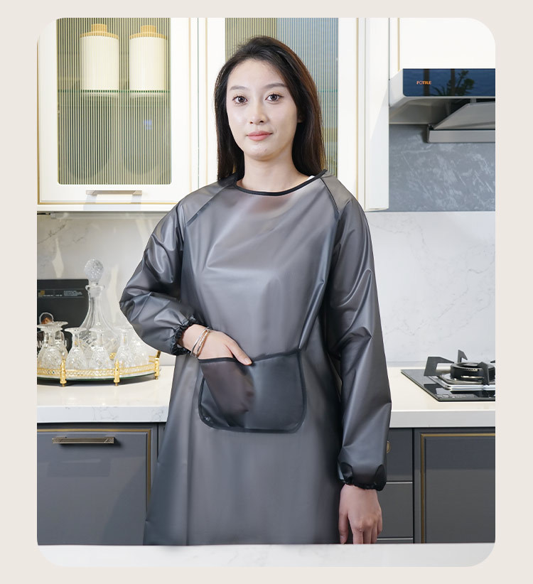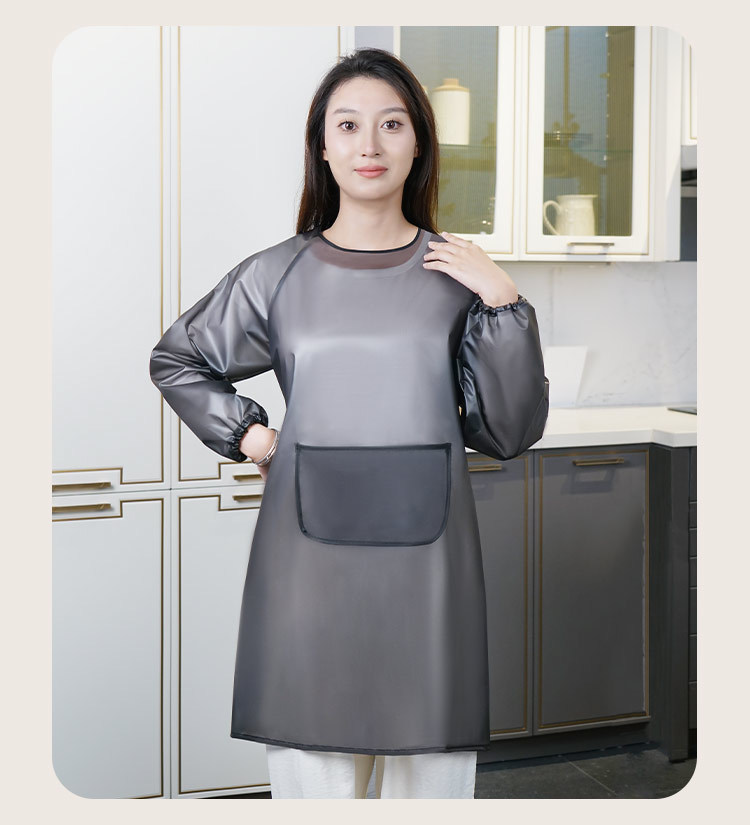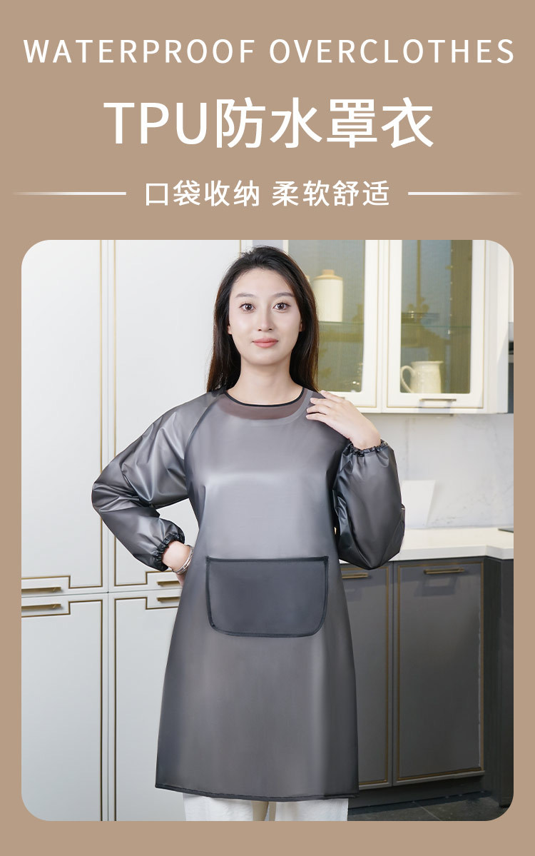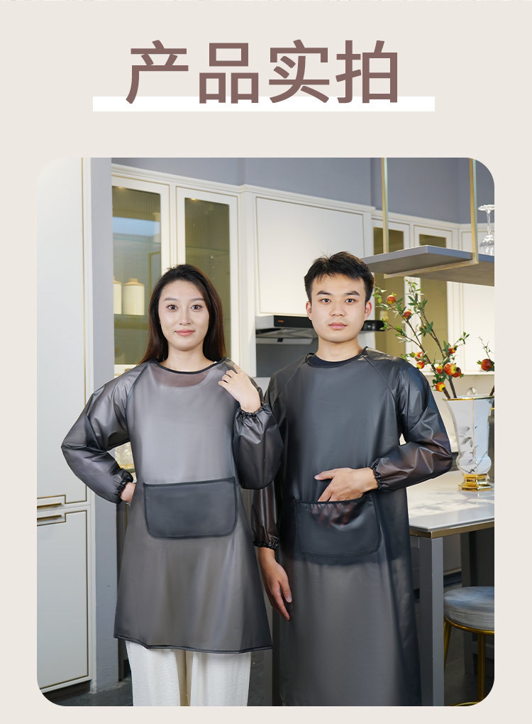 防水TPU围裙防油防污加长袖围腰厨房家用成人水产工作服罩衣倒褂