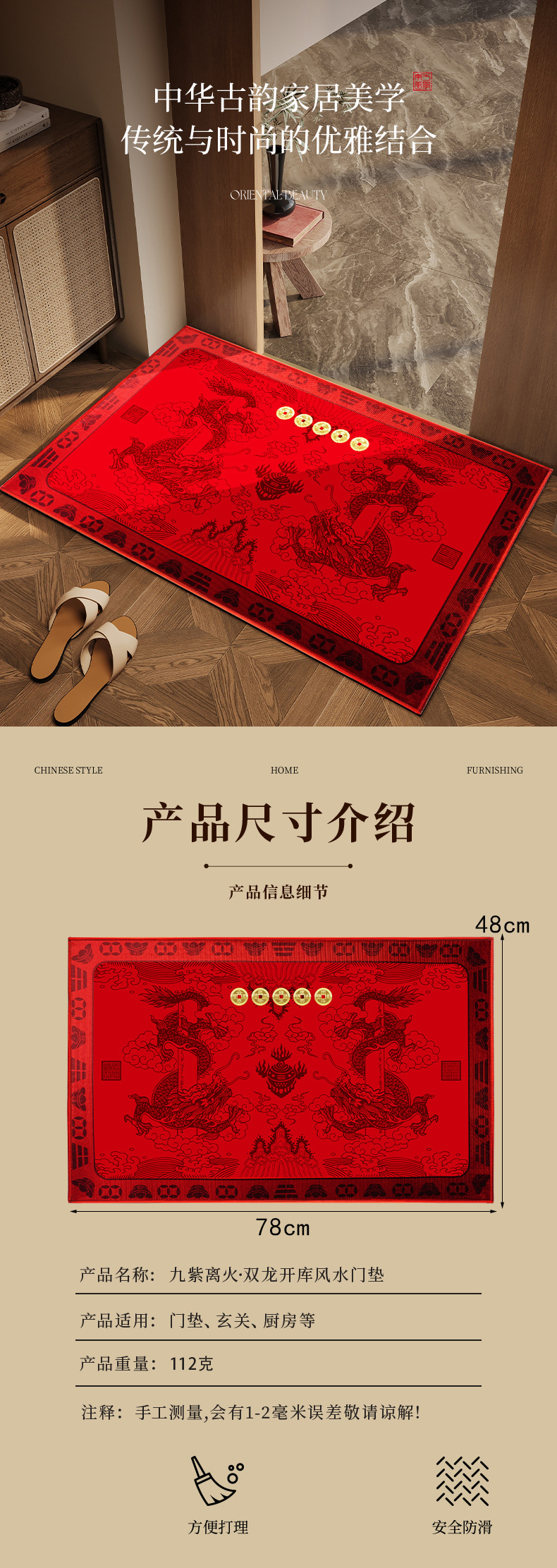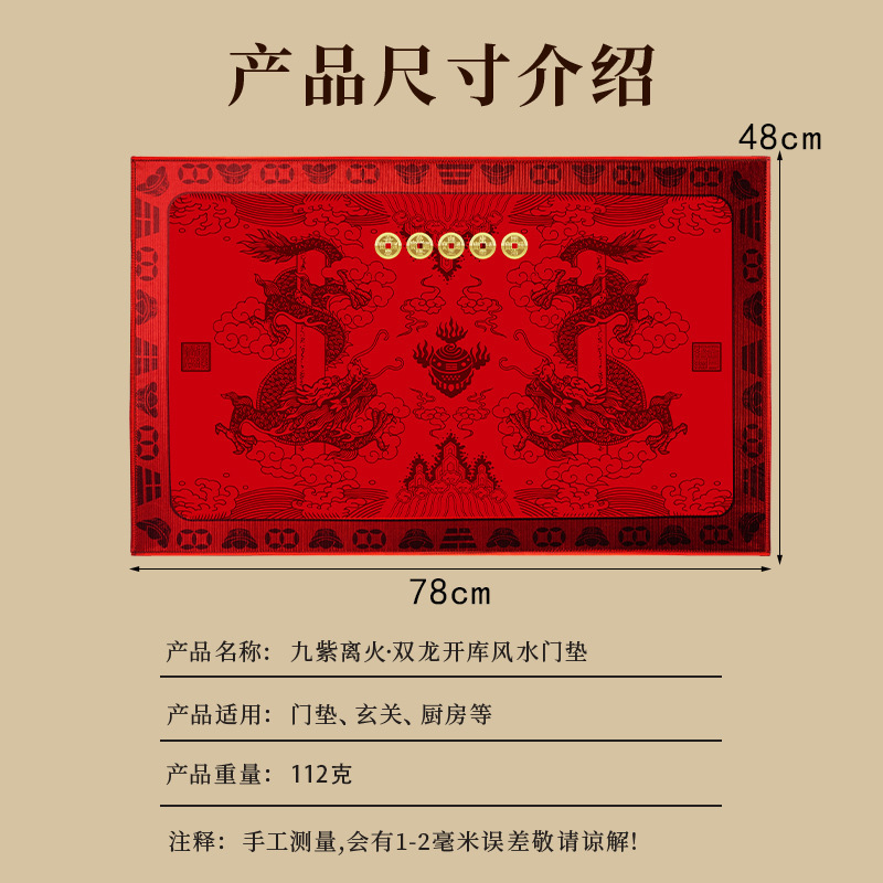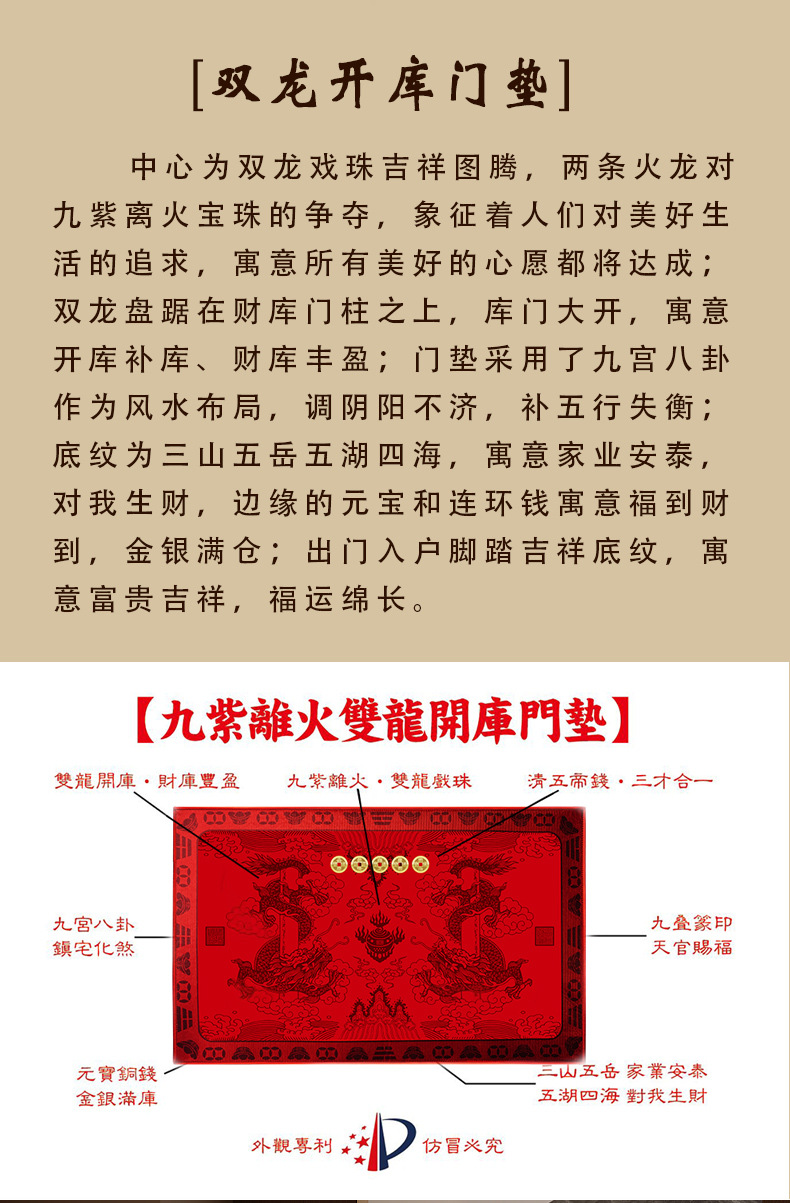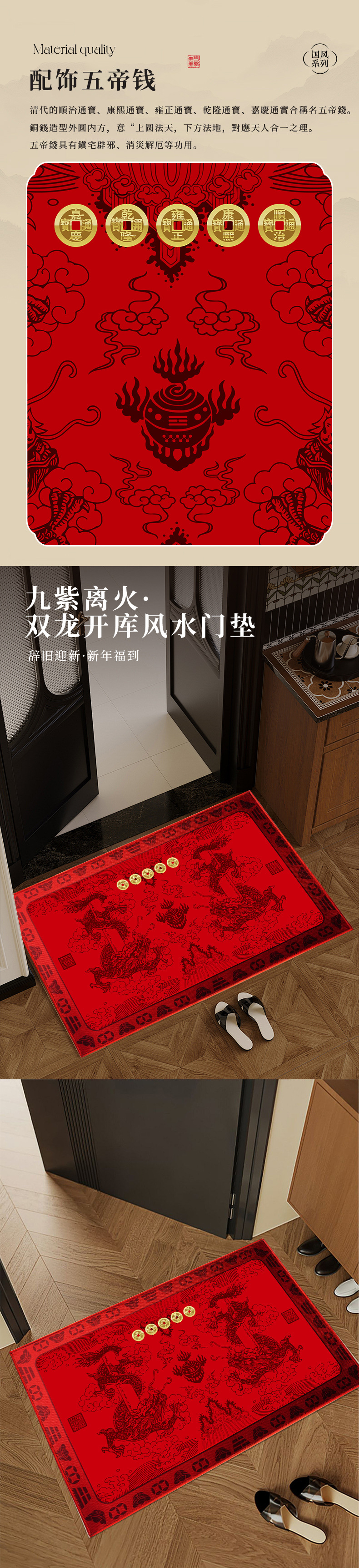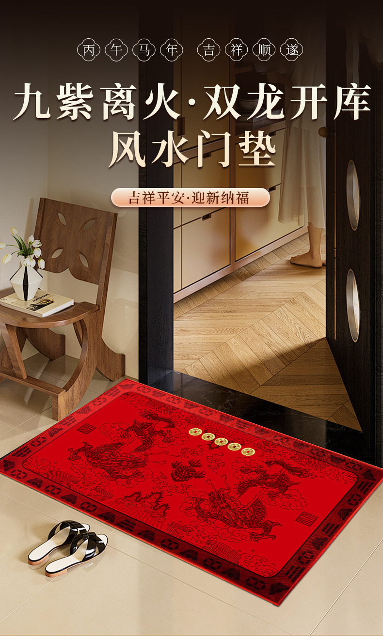 2026丙午马年九紫离火双龙开库风水门垫入户脚垫带五帝钱