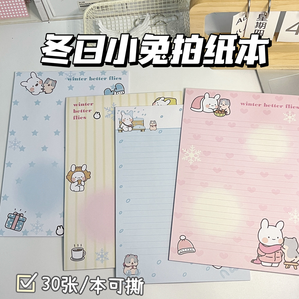 冬日小兔拍纸本写信纸纸本软萌横线内页学生笔记本便签纸
