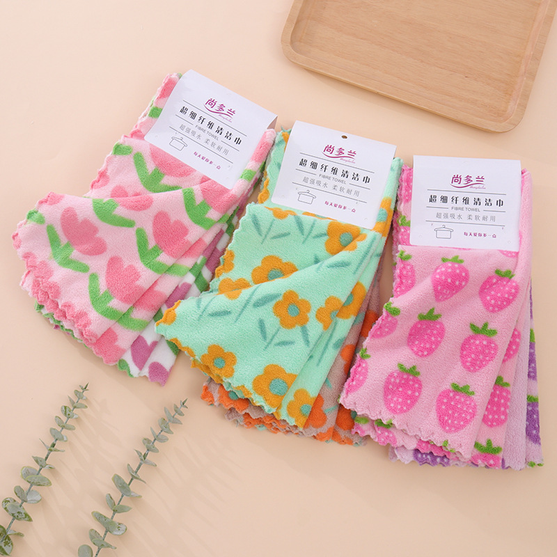 四つのセットの台所の雑巾は油にくっつかないで毛を落とさないで、家庭用の厚いプリントの角巾サンゴの毛を洗って布を洗います。