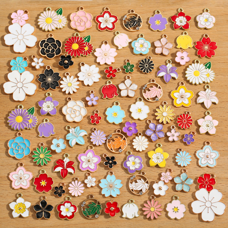 DIY合金饰品配件滴油向日葵花朵四叶草吊坠 手链项链耳环挂件W494