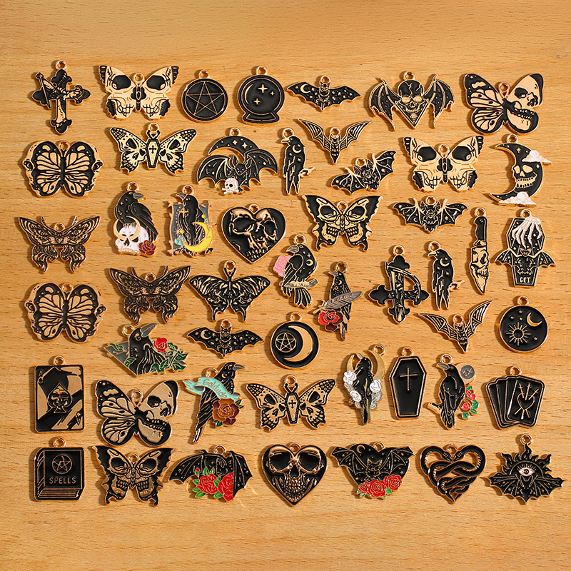 DIY合金滴油饰品配件万圣节哥特暗黑风镶钻蝴蝶蜘蛛吊坠挂件W527