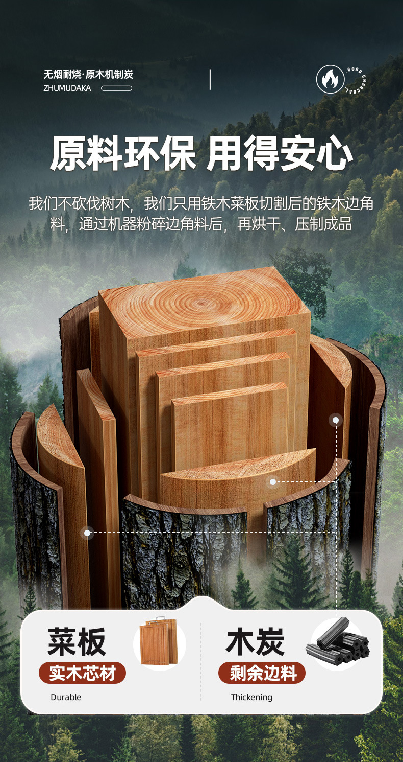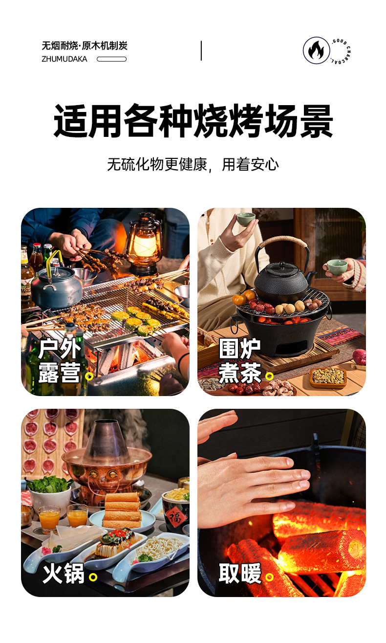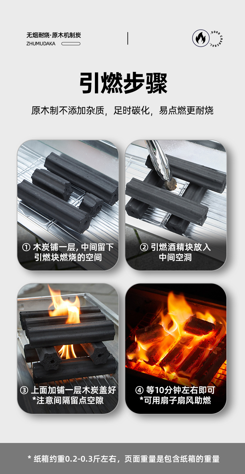 無煙原木炭屋外燃えやすいバーベキュー機製炭室内環境保護高温竹炭囲炉煮茶速燃焼肉