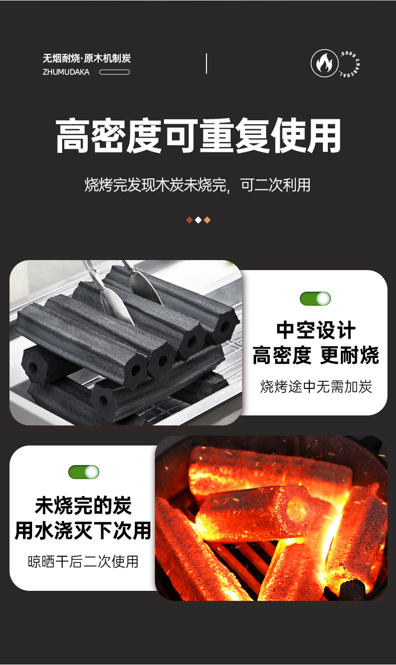环保机制木炭无烟耐烧烤专用碳烤炉商用高温竹炭家用炭火围炉煮茶