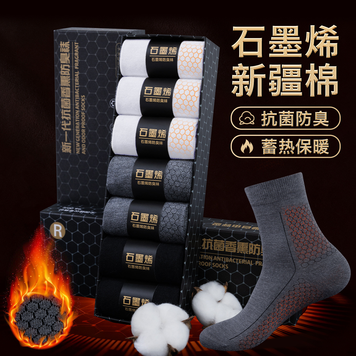 秋冬季新品石墨烯袜子男士7A级抗菌防臭袜保暖发热中筒新疆棉长袜