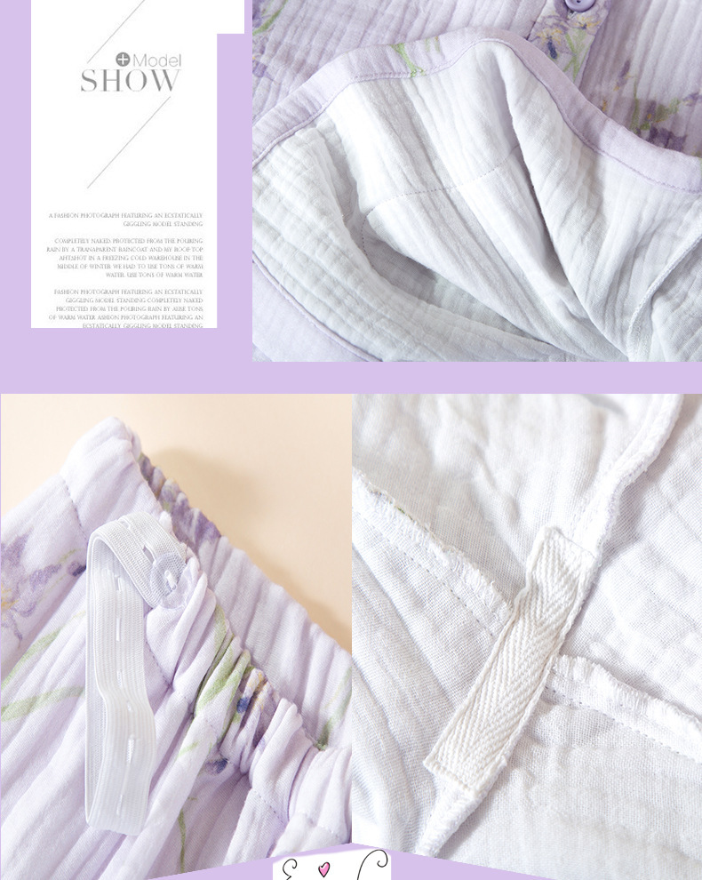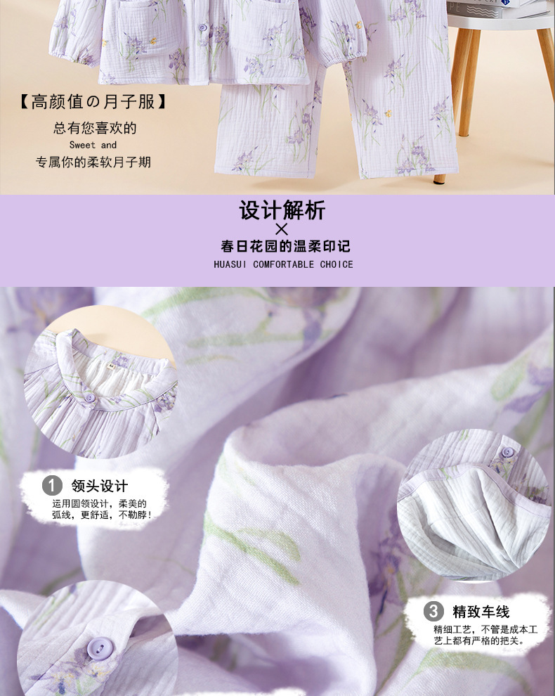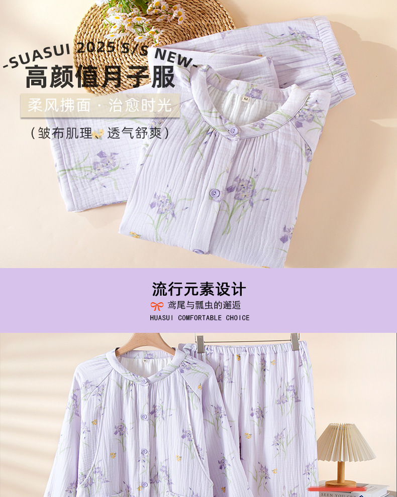 純綿二重クレープ月子服産後春夏吸汗通気性甘い純色ガーゼ妊婦授乳ホームウェア