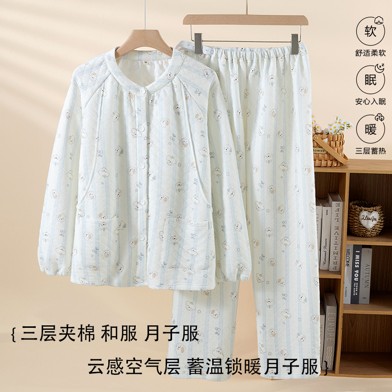 新款月子服睡衣女套装三层加厚春秋冬款空气棉月子服带哺乳口