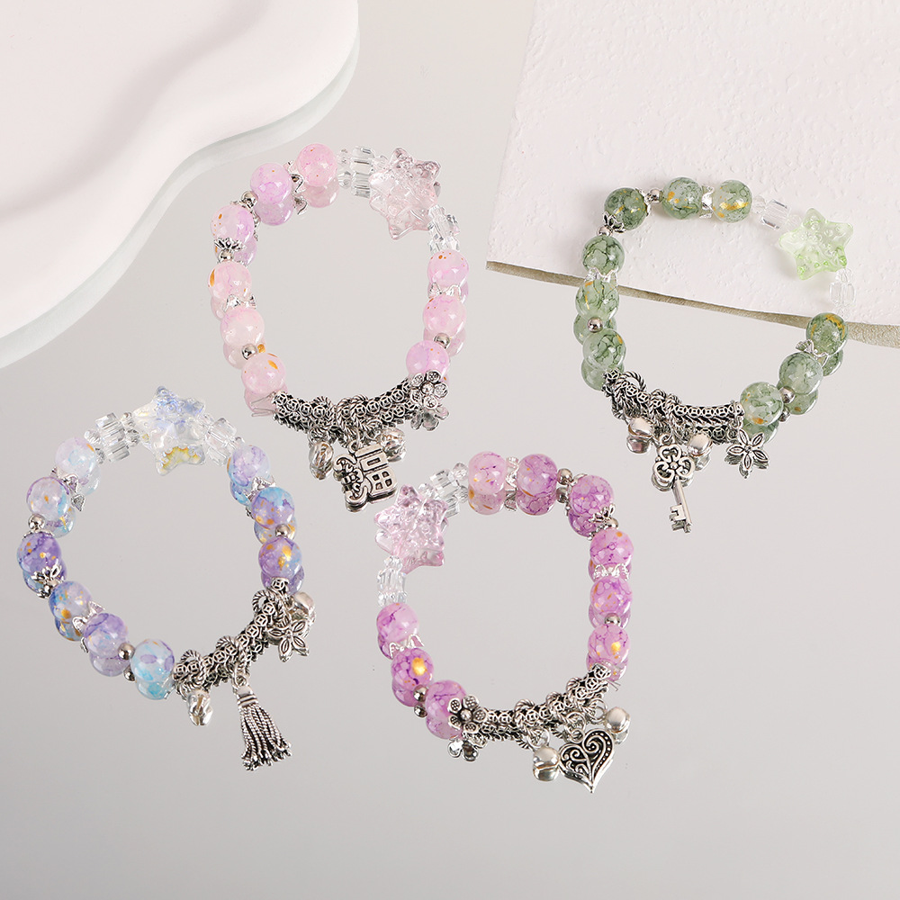 女性用花柄スターガラスブレスレット、ニッチデザイン、フォレストスタイルブレスレット、甘い妖精の親友爆発ビーズブレスレット