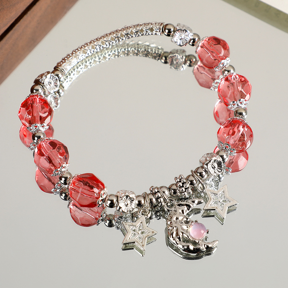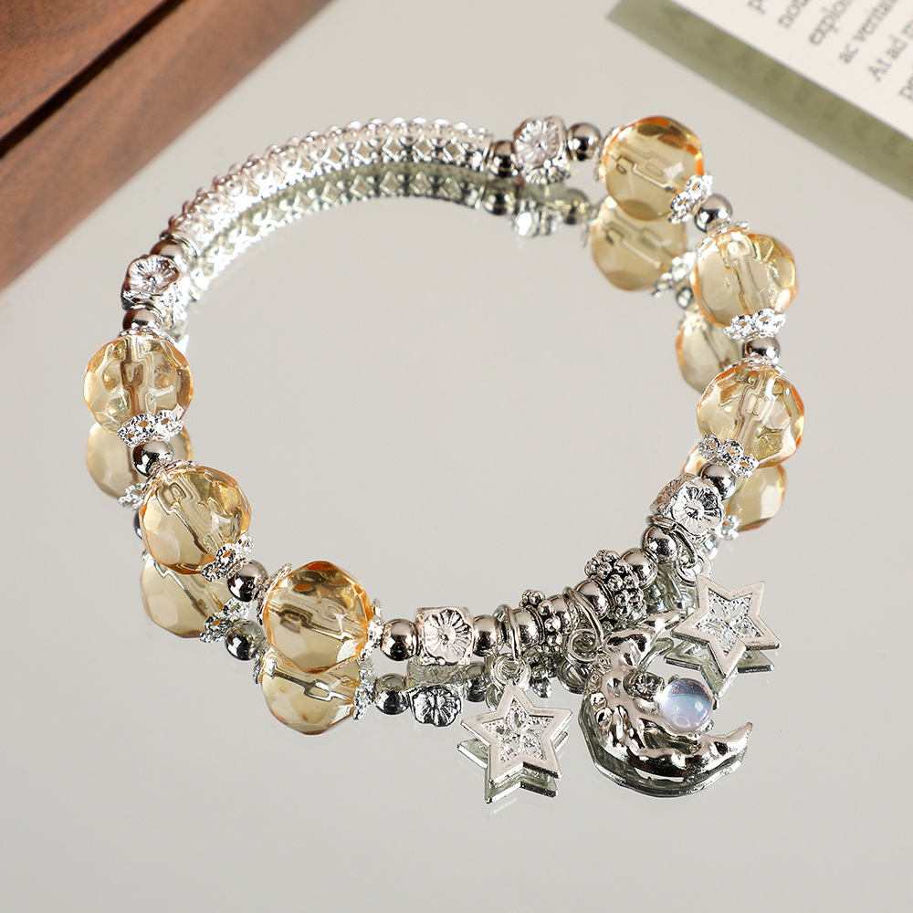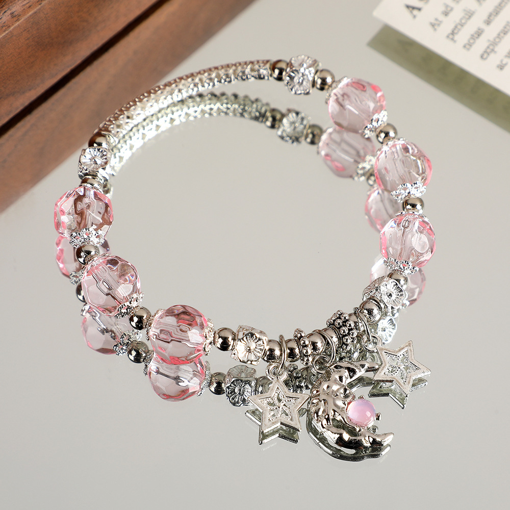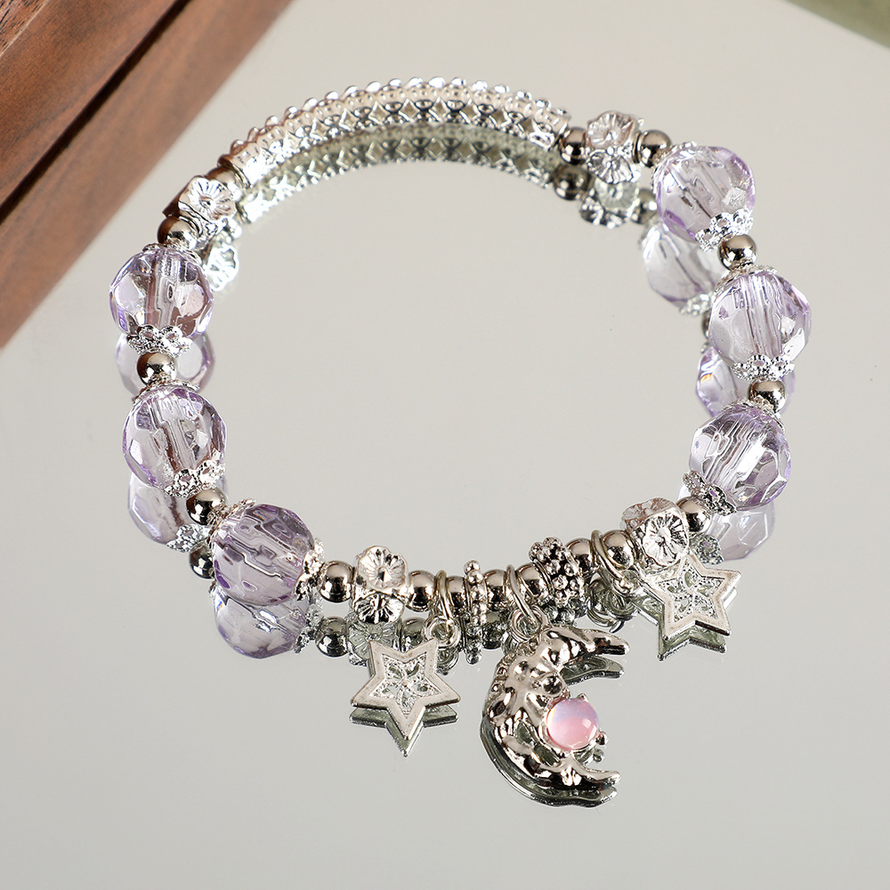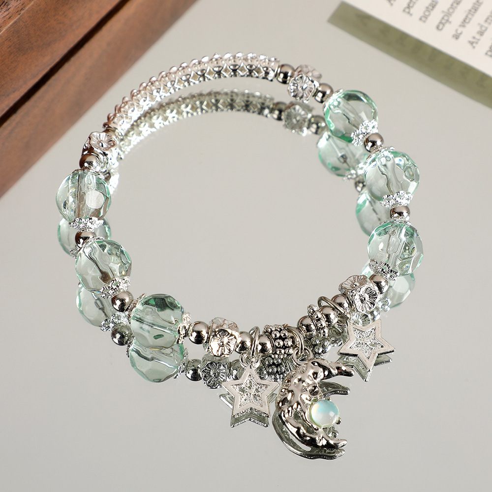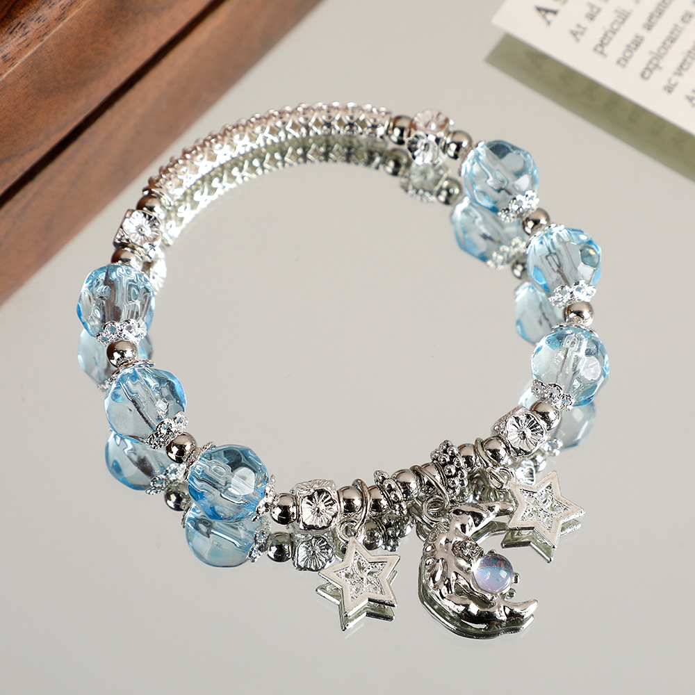 甜美森系星月水晶手链女ins小众设计百搭学生闺蜜diy渐变色手串