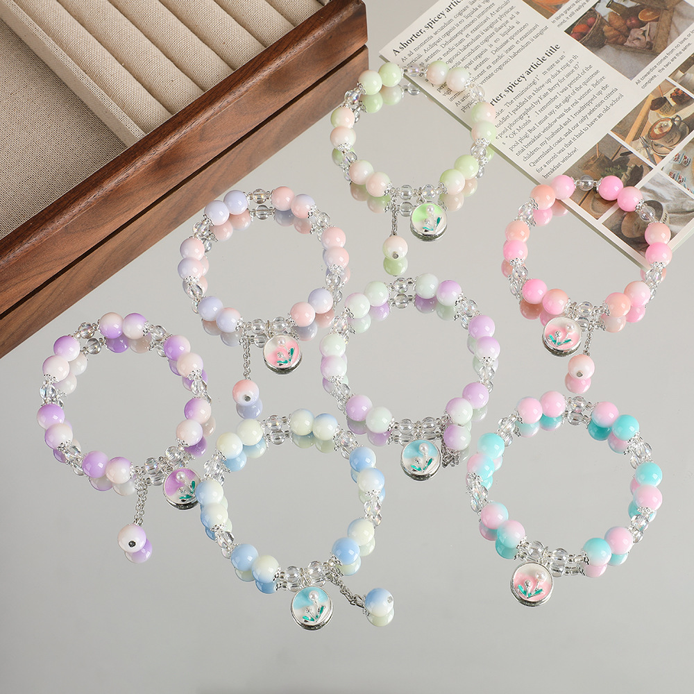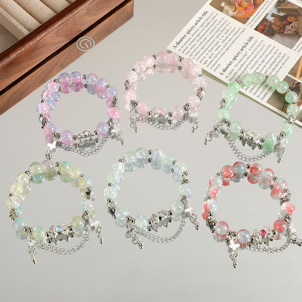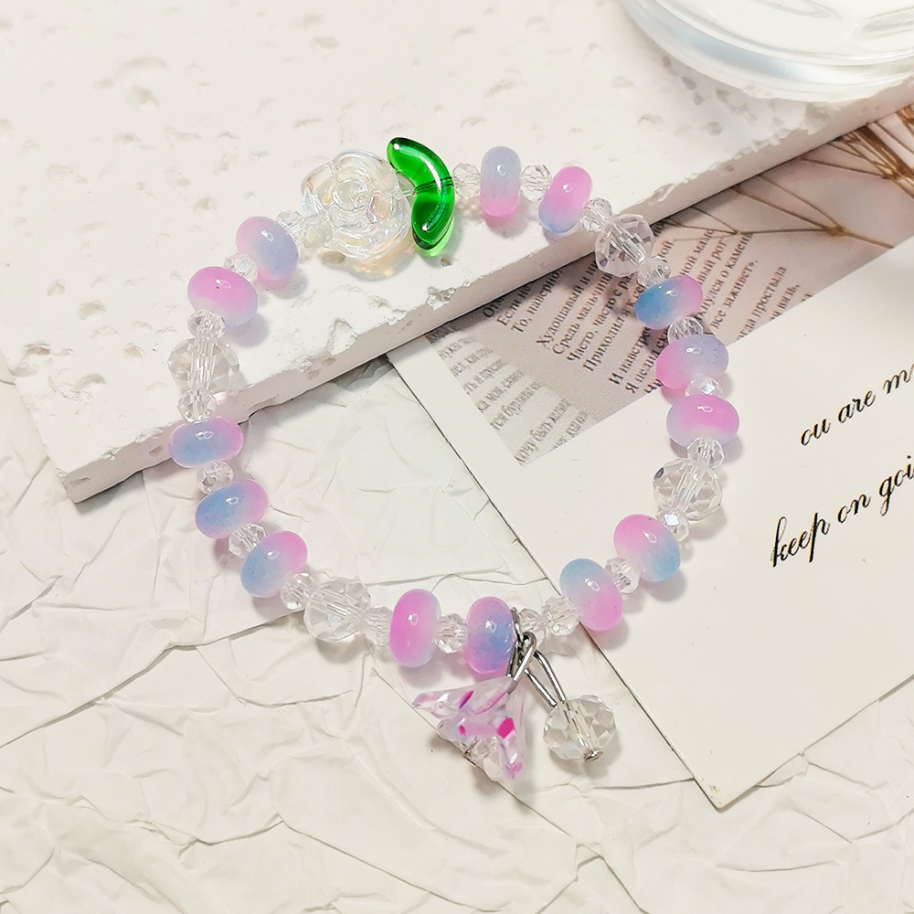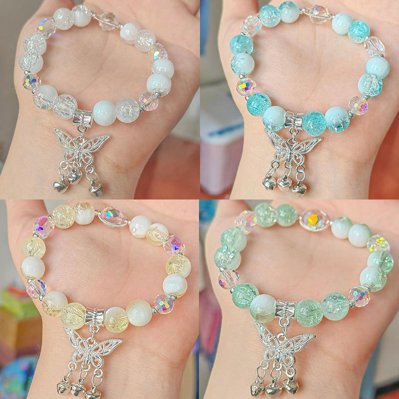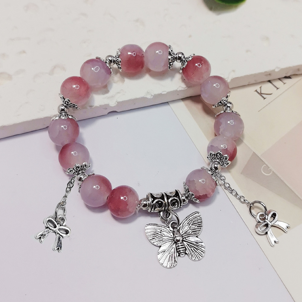 女性用の中国風のグラデーショングラスビーズブレスレット、新鮮で甘い蝶のペンダントブレスレット、ナイトマーケットの屋台のアクセサリー、親友へのギフト